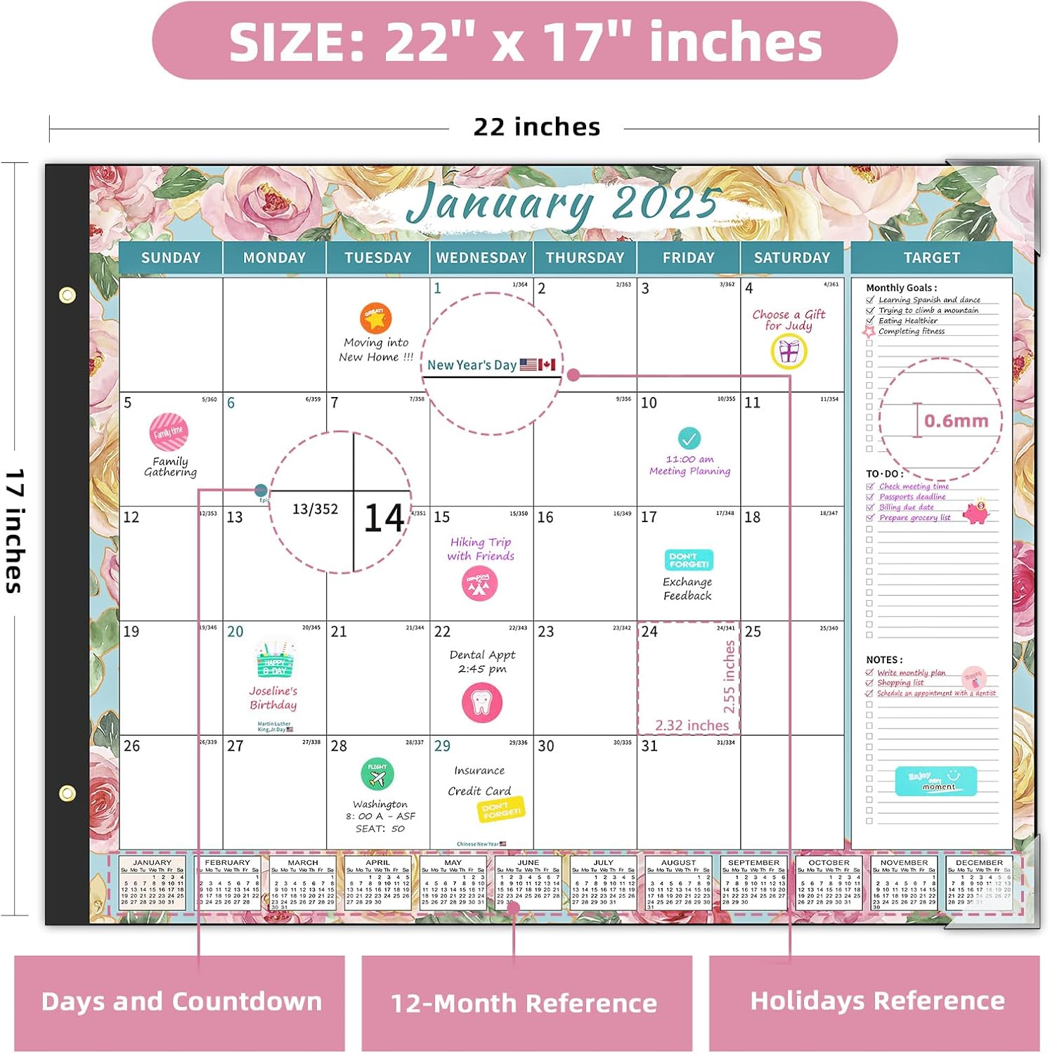 - 【6 Colorful Floral Patterns】Featuring 6 colorful floral patterns, this big calendar covers 18 months of planning, helping you stay on top of your schedule with ease while treating yourself to a new visual delight every month. This calendar is the perfect way to add a pop of color and style to your workspace.