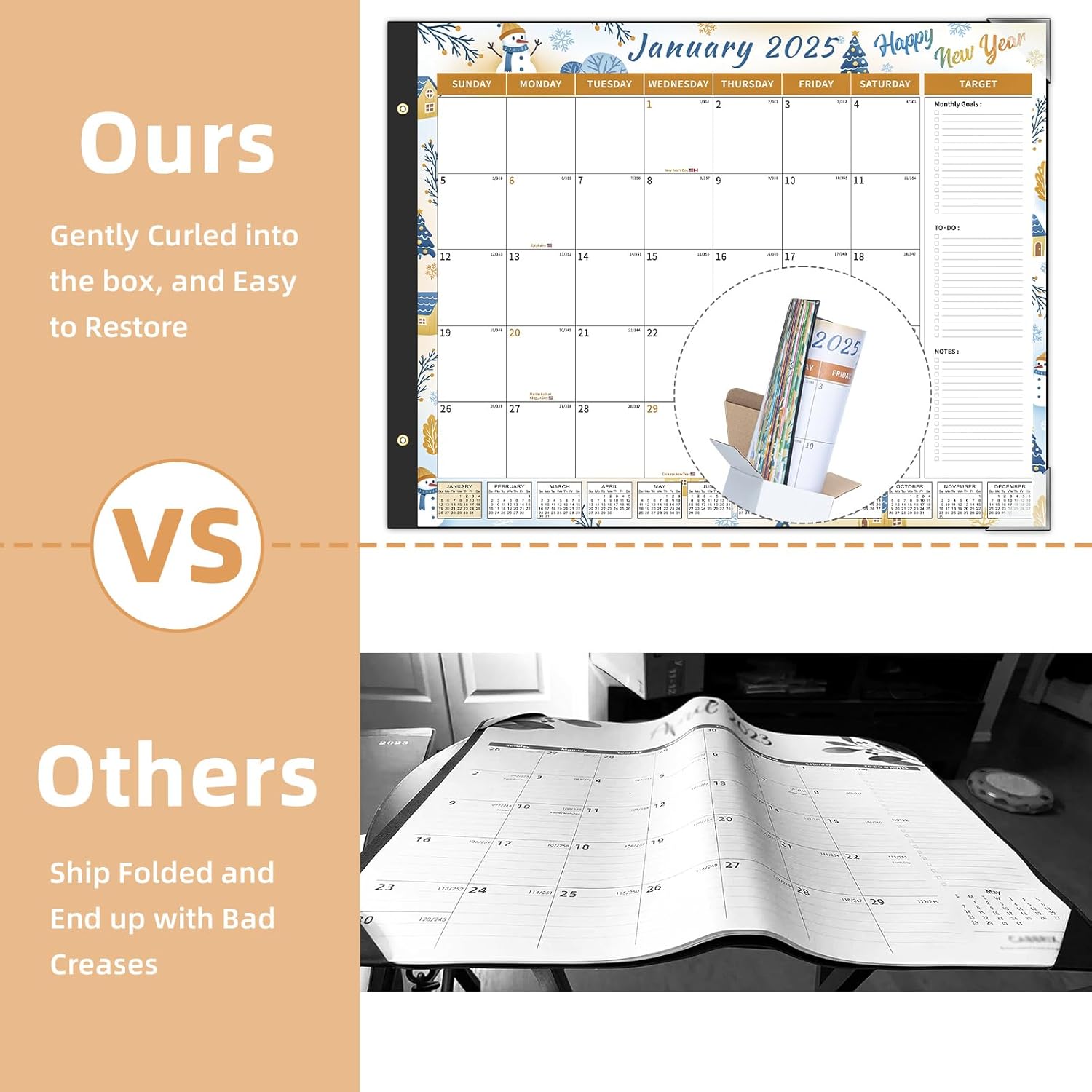 - 【Premium Thick Paper】With a weight of 0.264lb per sheet, the 2025 calendar is designed using premium thick paper, ensuring a high-quality writing experience. It is resistant to ink seepage, resulting in clean and crisp writing. To safeguard the calendar from dust and liquids, it comes with a transparent PVC cover. Two corner protectors are included to keep the pages flat. Plus, the cutting line allows for effortless tearing of each month's page. This desk calendar is perfect to long-term use.