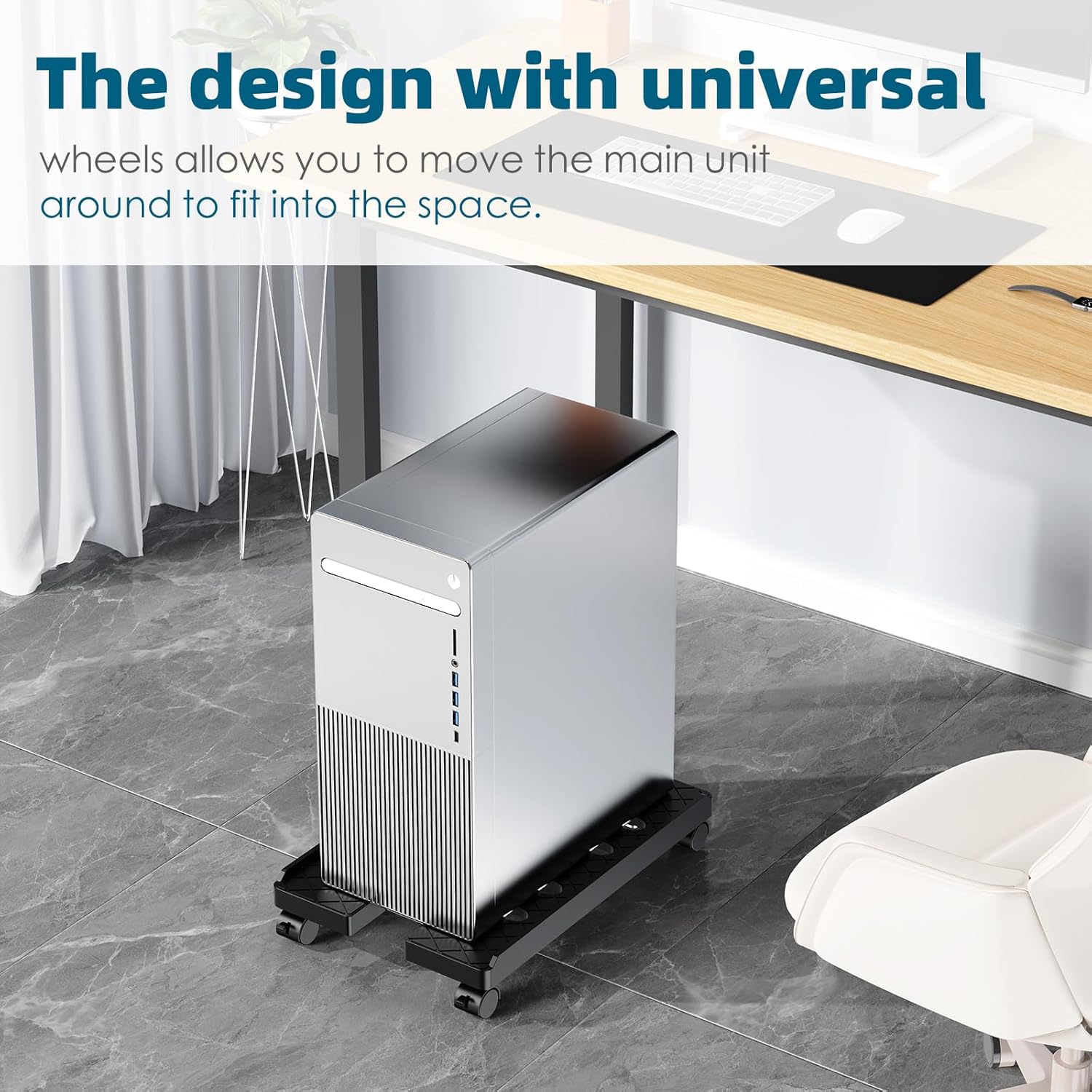 - EASY TO MOVE: Four 360°rotating universal wheels can move the computer tower to the position you want, making it easy for you to move to clean the ground. And two of the wheels can be locked to keep them stationary when needed. When you need it, it can easily go under your computer desk or printer stand and stay in place.