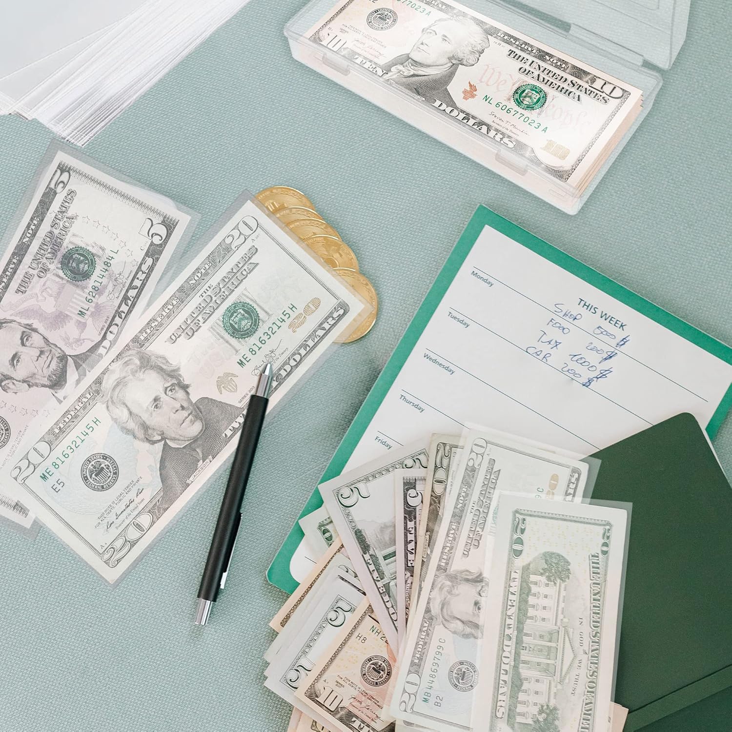300 Pieces Clear Paper Money Sleeve for Bill, Individual Dollar Bills Sleeves for Collectors, Paper Currency Sleeves Protector for Bills with Plastic Storage Case
