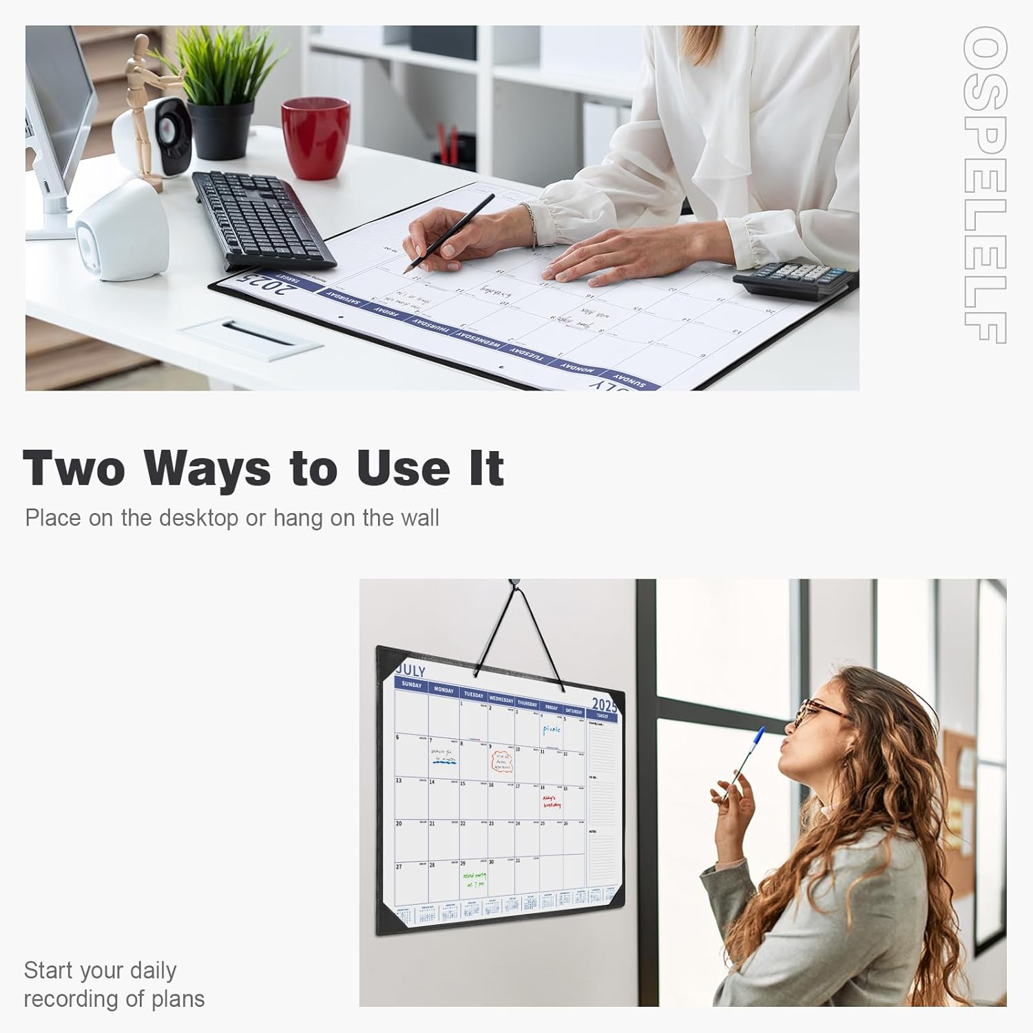 Ospelelf Large Desk Calendar 2025-2026 with Plastic Cover, 18 Months Planner Pad from January 2025 to June 2026, 22" x 17" PU Leather Wall Calendar for Home or Office, Black