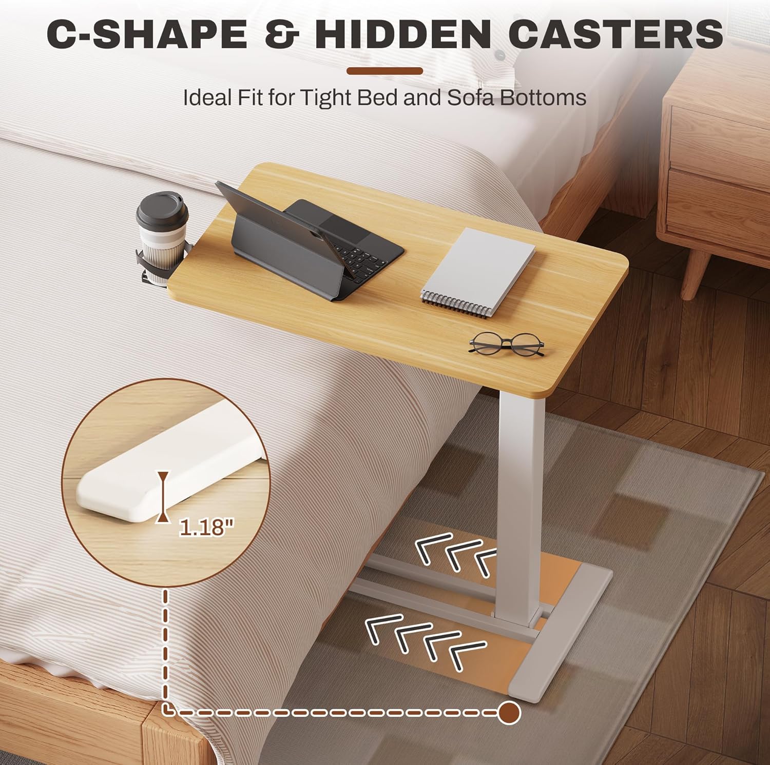 - Multi-function in One Design:This rolling computer desk offers a reliable and convenient desktop surface for anyone to use near furniture like beds, couches and recliners. It can also be used as breakfast tray for bedridden patients and elderly (e.g. eating, reading, working)without having to get off their beds.