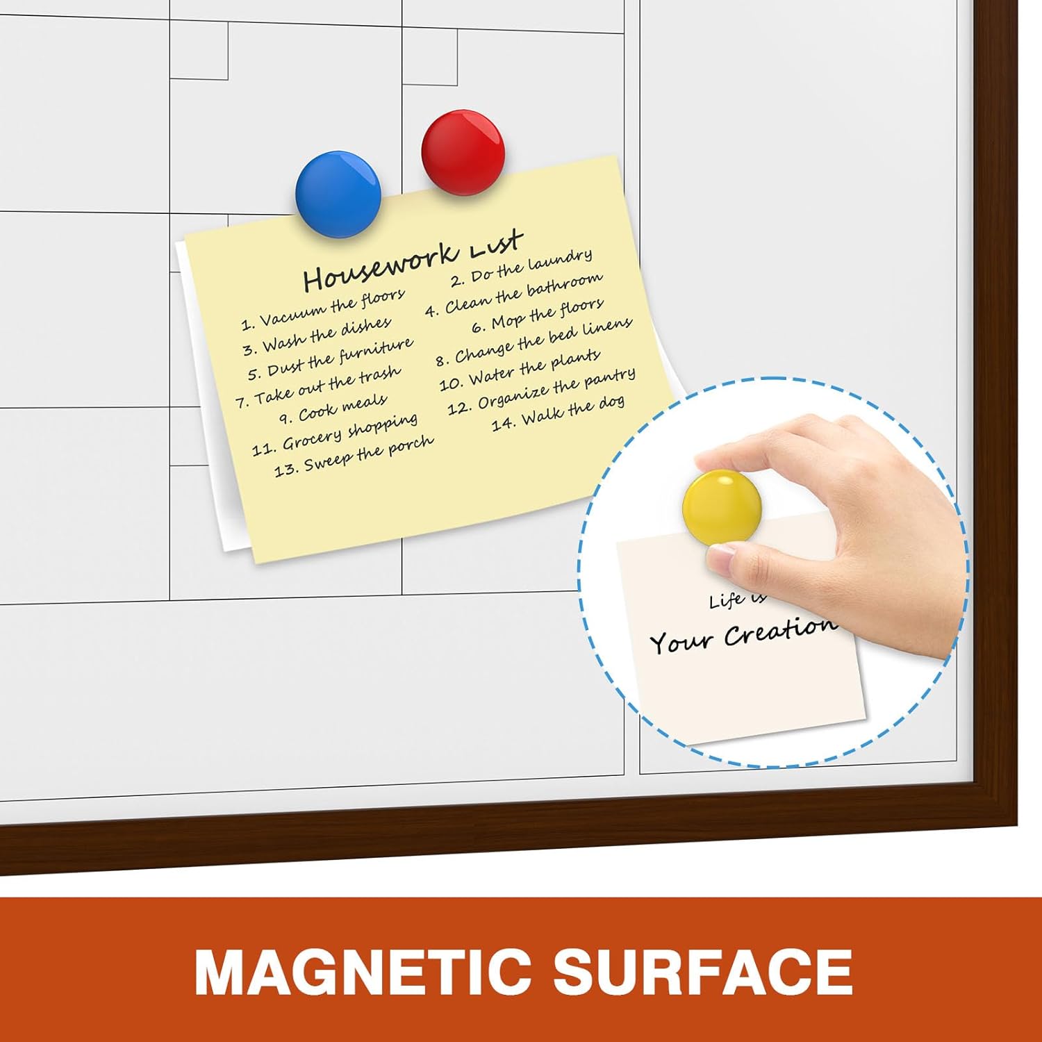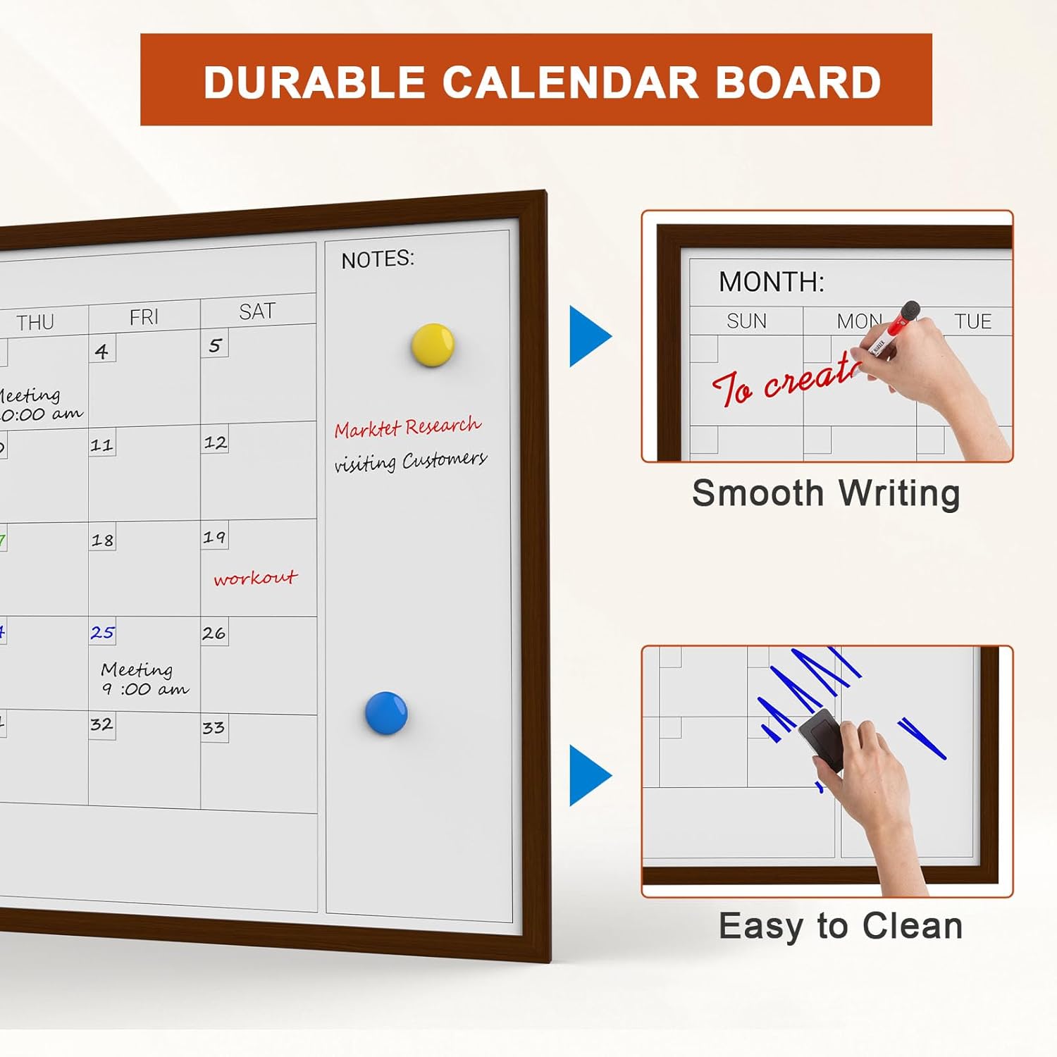 Comix Dry Erase Calendar Whiteboard for Wall,Magnetic Dry Erase White Board with Brown Wood Frame, 36 * 24 inches Decorative Planner Board for Office, Kitchen, School, Home
