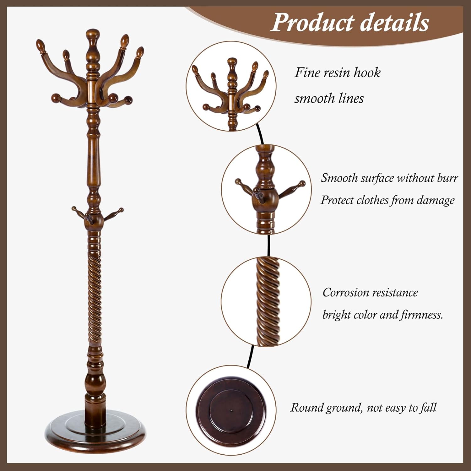- NATURAL SOLID WOOD: The wooden coat rack is carefully selected from natural birch wood. The wooden coat rack freestanding has a natural texture, which is tough and sturdy, wear-resistant and not easy to crack, and durable