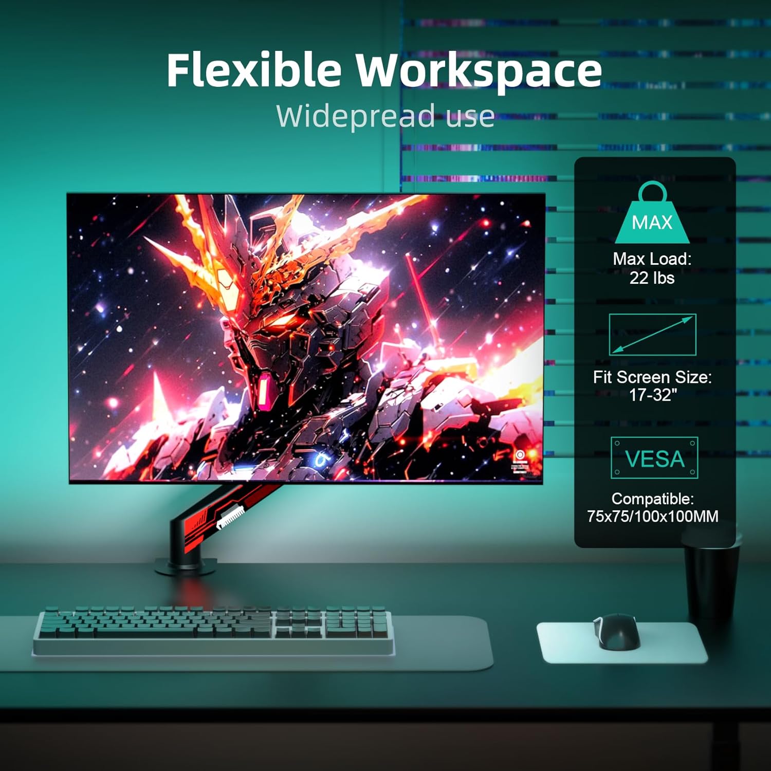 Suptek Monitor Mount Gas Spring Arm Desk Mount Stand - Fully Adjustable, Fits 32 inch Monitors, Weight Capacity up to 22 lbs (MD8WR)