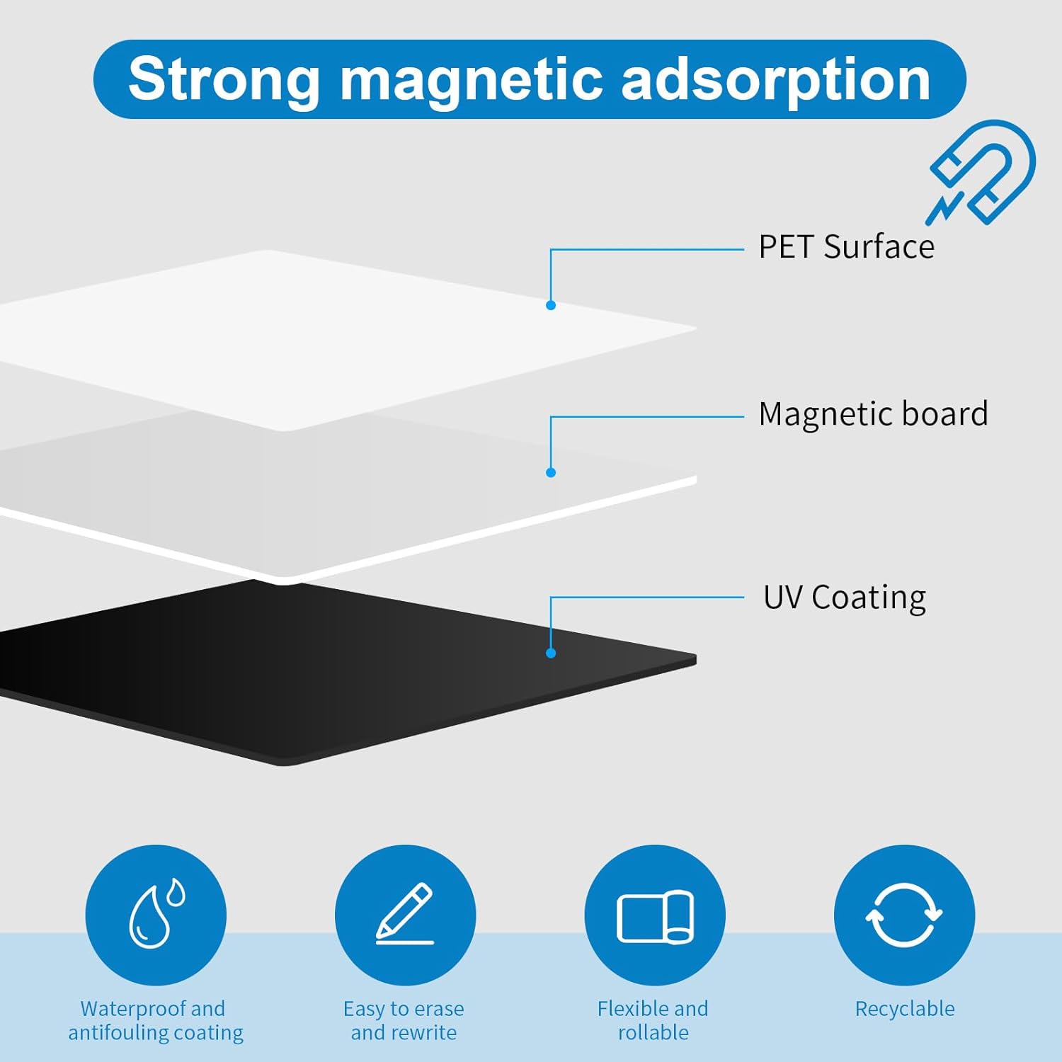 - 【Super Strong Magnetism】Lyzzxi magnetic whiteboard paper are available in different sizes and are made of high quality strong magnetic material, the magnetism is very stable and can provide stronger adsorption, which won't be weakened by time or frequency of use.Just put it down gently and board will stick firmly to the fridge and won't fall off any way you open the door unless you seriously try to tear whiteboard off.