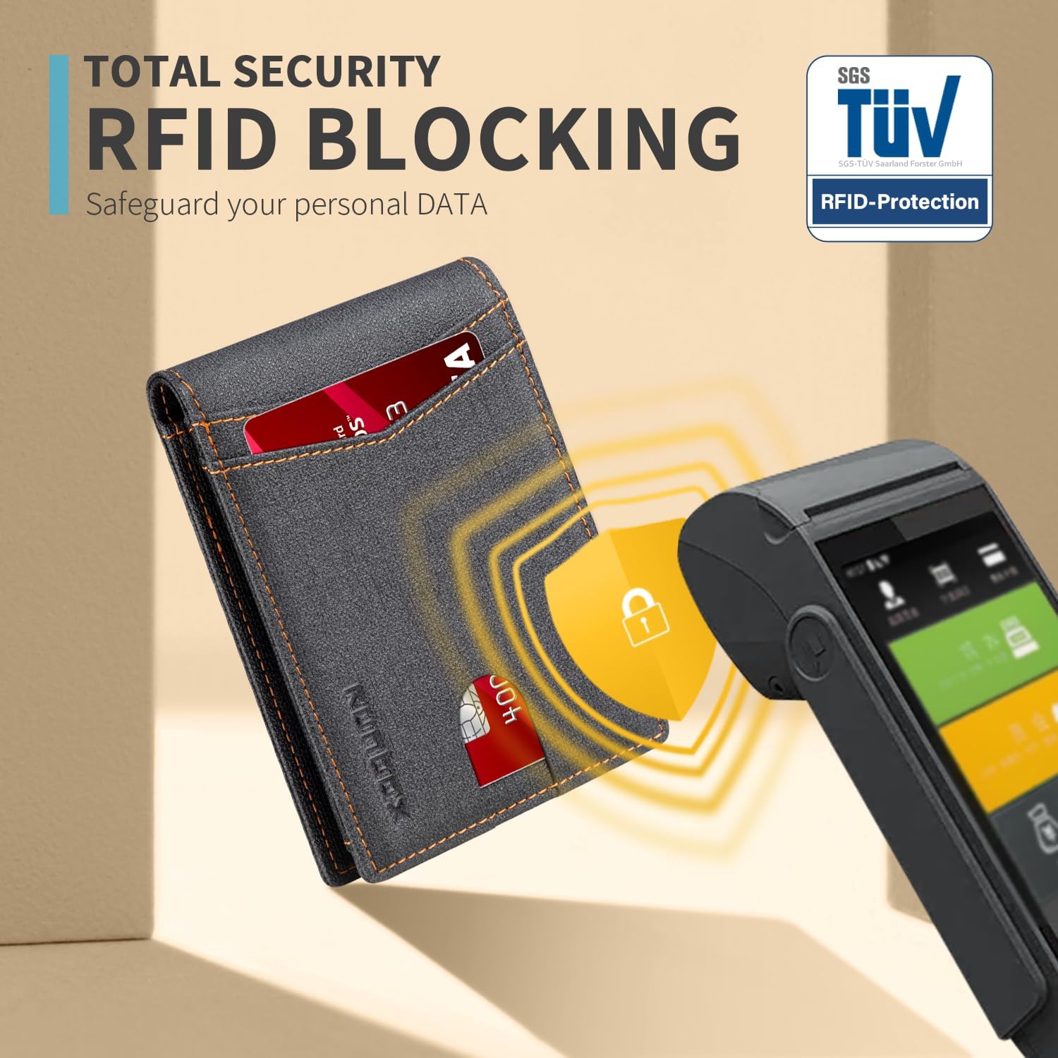 - RFID Blocking - Our wallets are equipped with advanced RFID SECURE Technology, a unique metal composite, engineered specifically to block 13.56 MHz or higher RFID signals and protect the valuable information stored on RFID chips from unauthorized scans. License and ID cards will be protected effectively. Blocking the 13.56 MHz band and protect against data theft by RFID scanners