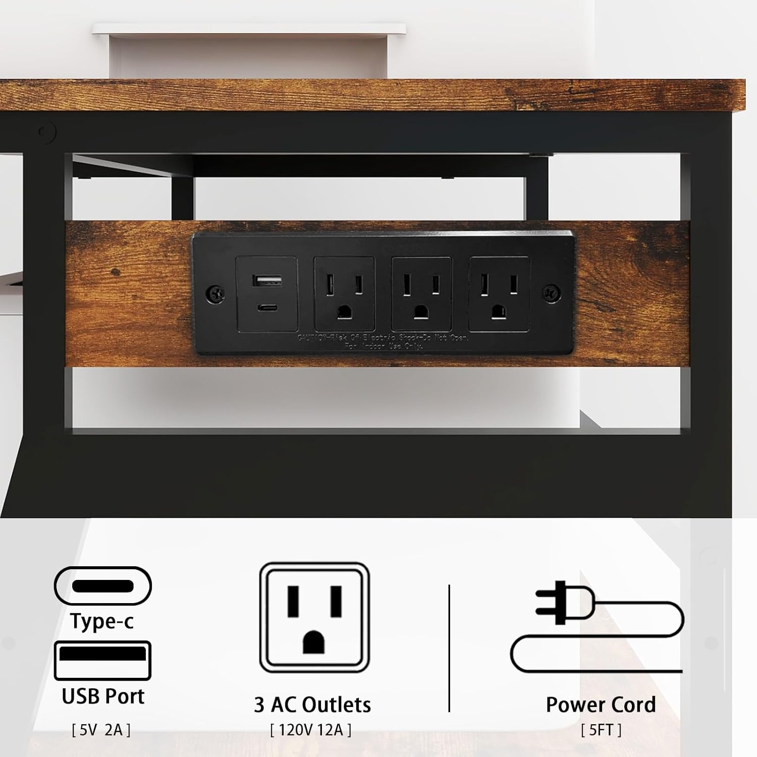 - 【Built-in Power Outlets】The printer table for home office is configured with charging station on the side panel. There are 3 AC outlets,1 Type-C and 1 USB Port that allows for simultaneous charging of the printer, computer host or shredder, and your laptop, phones. We provide 5ft length power cord for your flexible use of position.