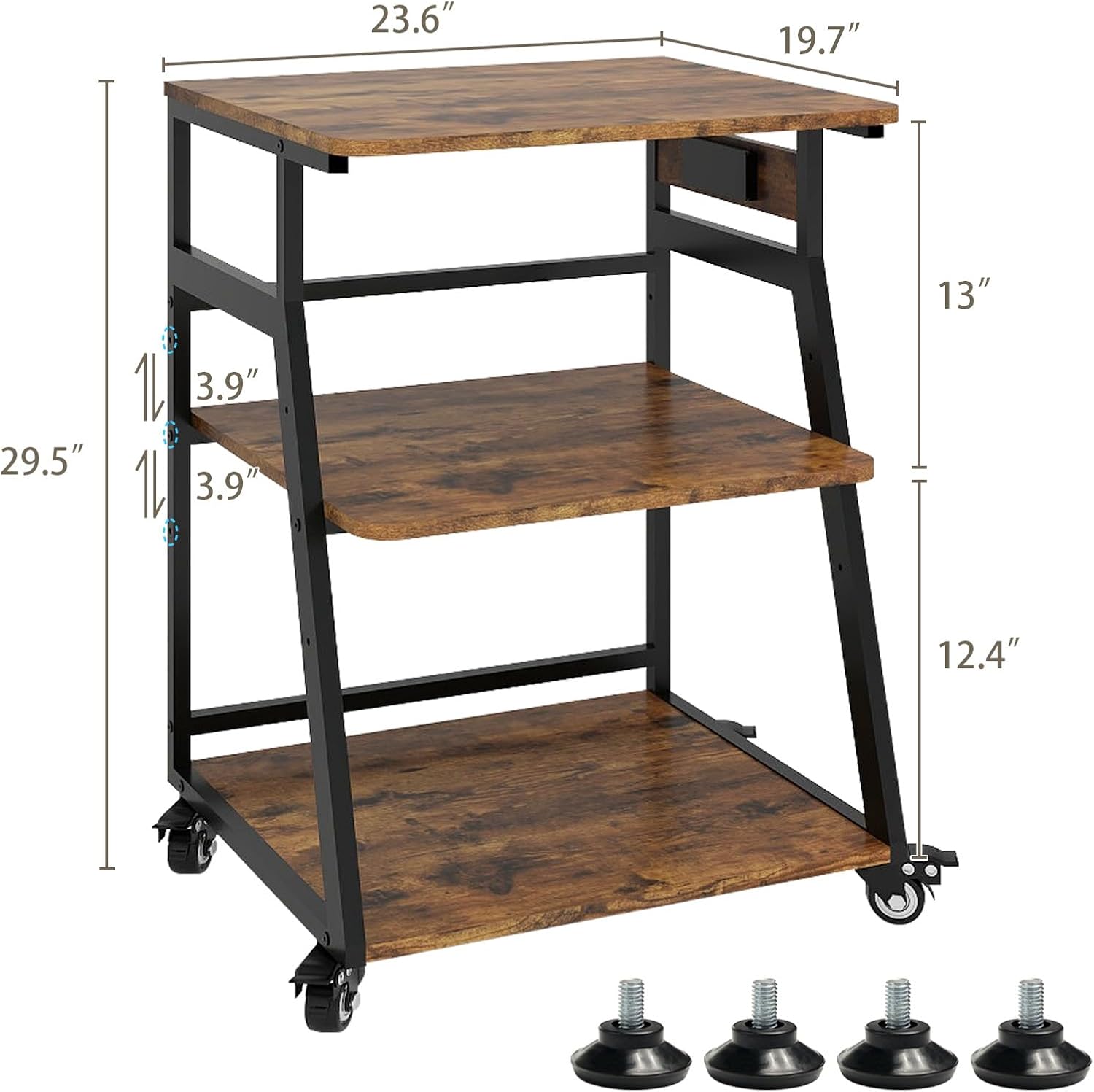 Natwind 23.6"x19.7" Large Printer Stand,3 Tier Printer Table with Charging Station, Rolling Cart with Adjustable Storage Shelf for Home Office Organization, Stand for Heat Press,3D Printer (Retro)