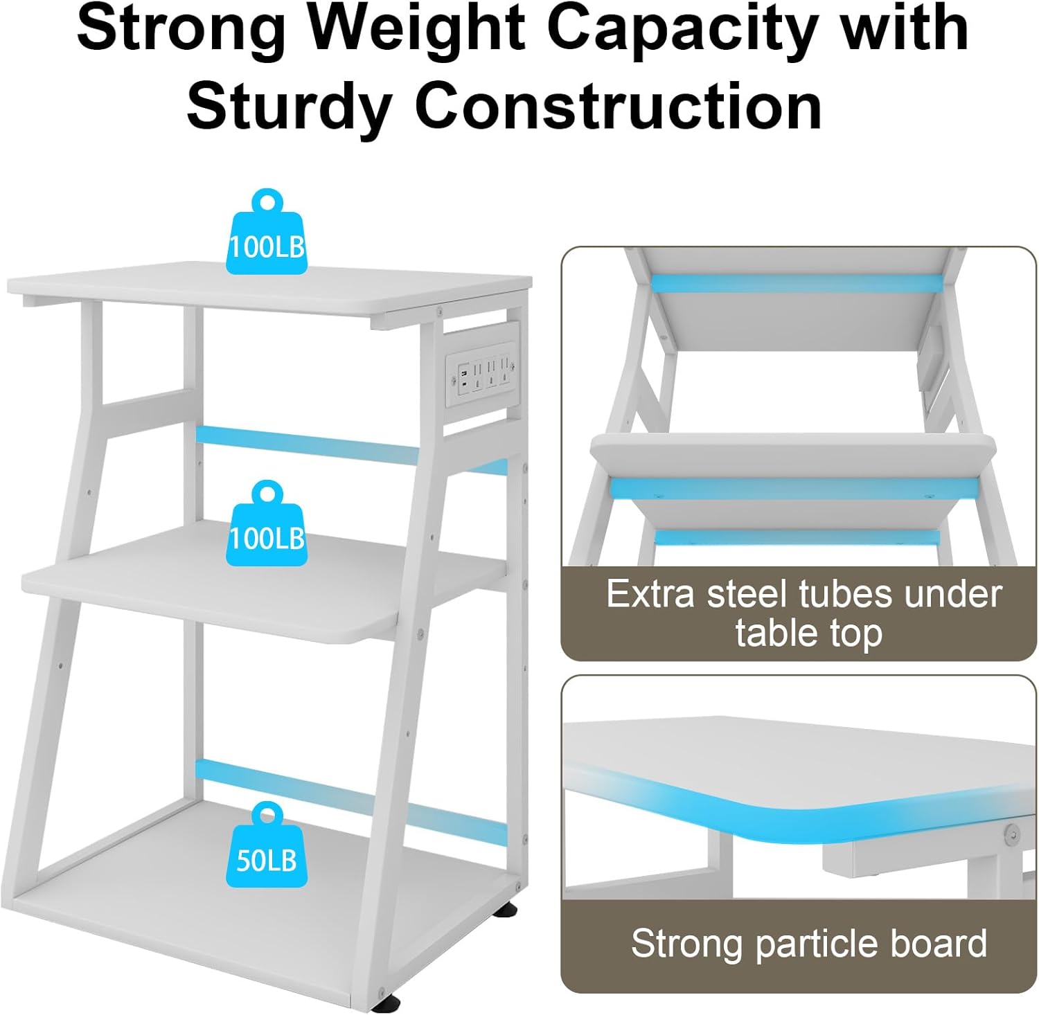 - 【Built-in Power Outlets】The printer table for home office is configured with charging station on the side panel. There are 3 AC outlets,1 Type-C and 1 USB Port that allows for simultaneous charging of the printer, computer host or shredder, and your laptop, phones. We provide 5ft length power cord for your flexible use of position.