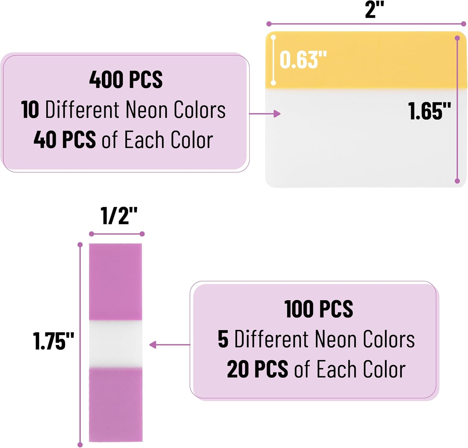Mr. Pen- Sticky Index Tabs, 500 Pcs, 21 Sets, Colorful Sticky Tabs for Notebooks, Page Markers, Page Tabs for Binders, Page Tabs Sticky Tabs for Books, Notebook Tabs, Book Sticky Tabs for Notebooks