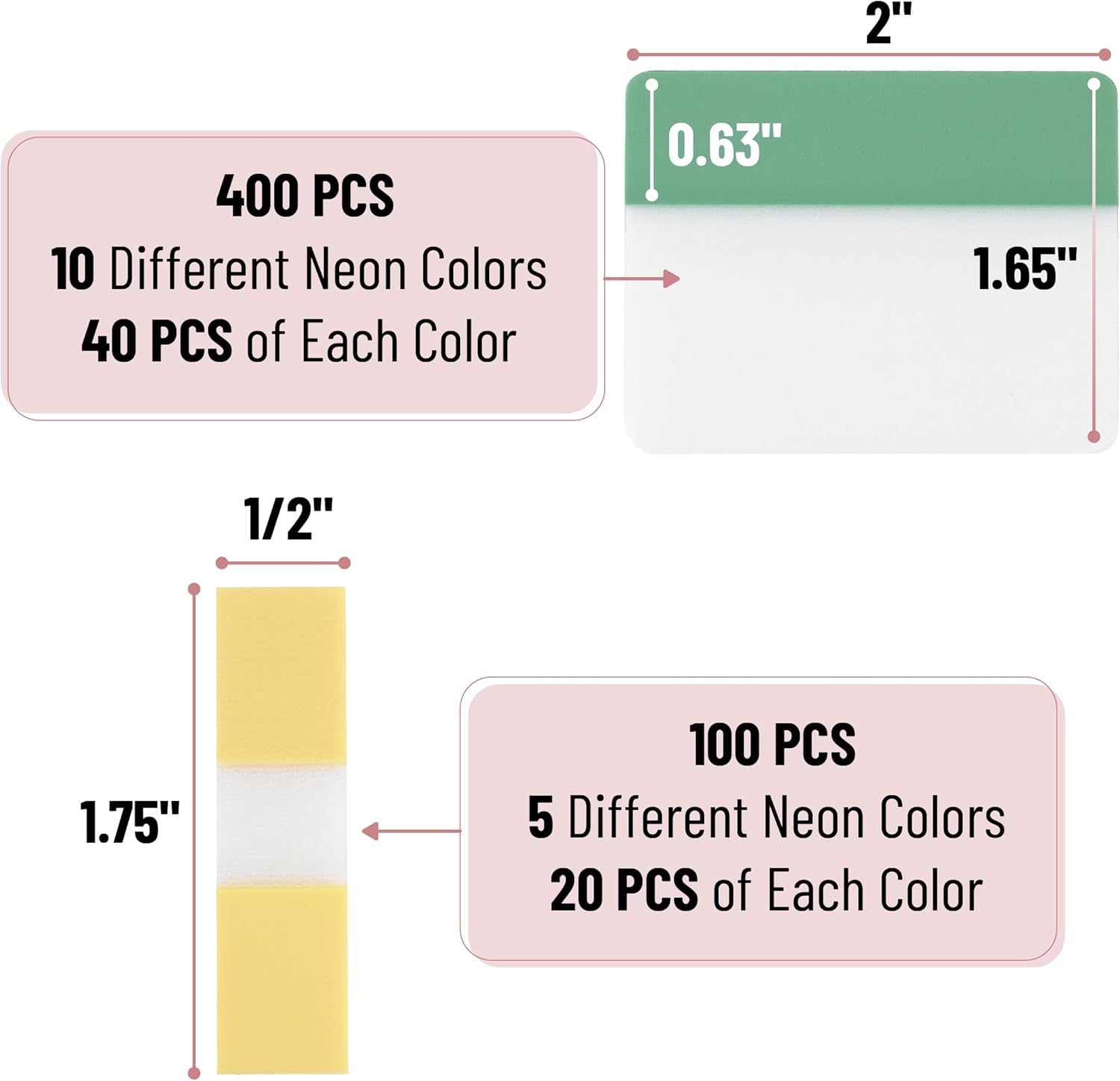 Mr. Pen- Sticky Index Tabs, 500 Pcs, 21 Sets, Colorful Sticky Tabs for Notebooks, Page Markers, Page Tabs for Binders, Page Tabs Sticky Tabs for Books, Notebook Tabs, Book Sticky Tabs for Notebooks