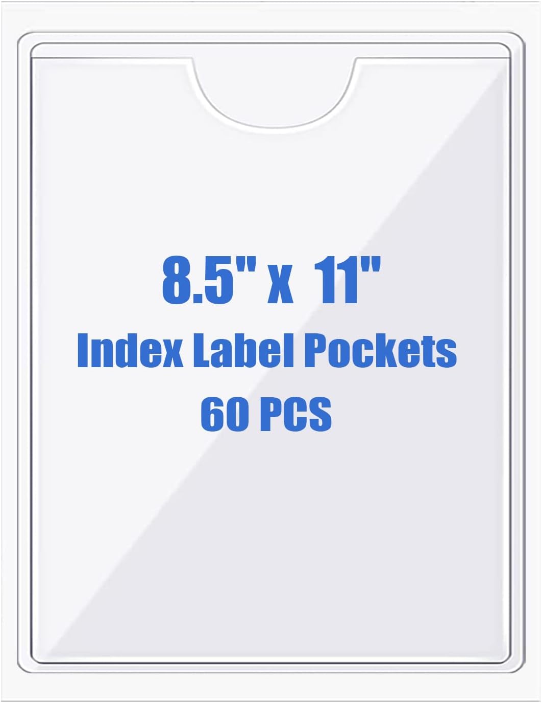 Origin-Joy 60 PCS Self Adhesive Index Card Pockets with Top Open, Clear Plastic Label Holder for Notes, Library and Business, Adhesive Label Pockets & Holder (8.5 x 11 inch)
