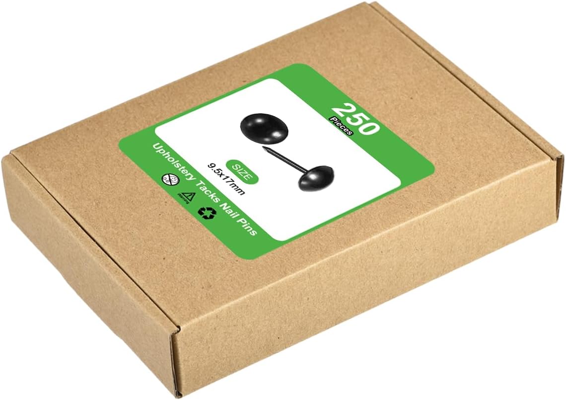 - Specifications: Material: Carbon steel; Color: Black; Diameter of nails head: 9.5mm/0.38inch; Shank length: 17mm/0.67inch; Package Content: 250Pcs x Upholstery Tacks Nail Pins