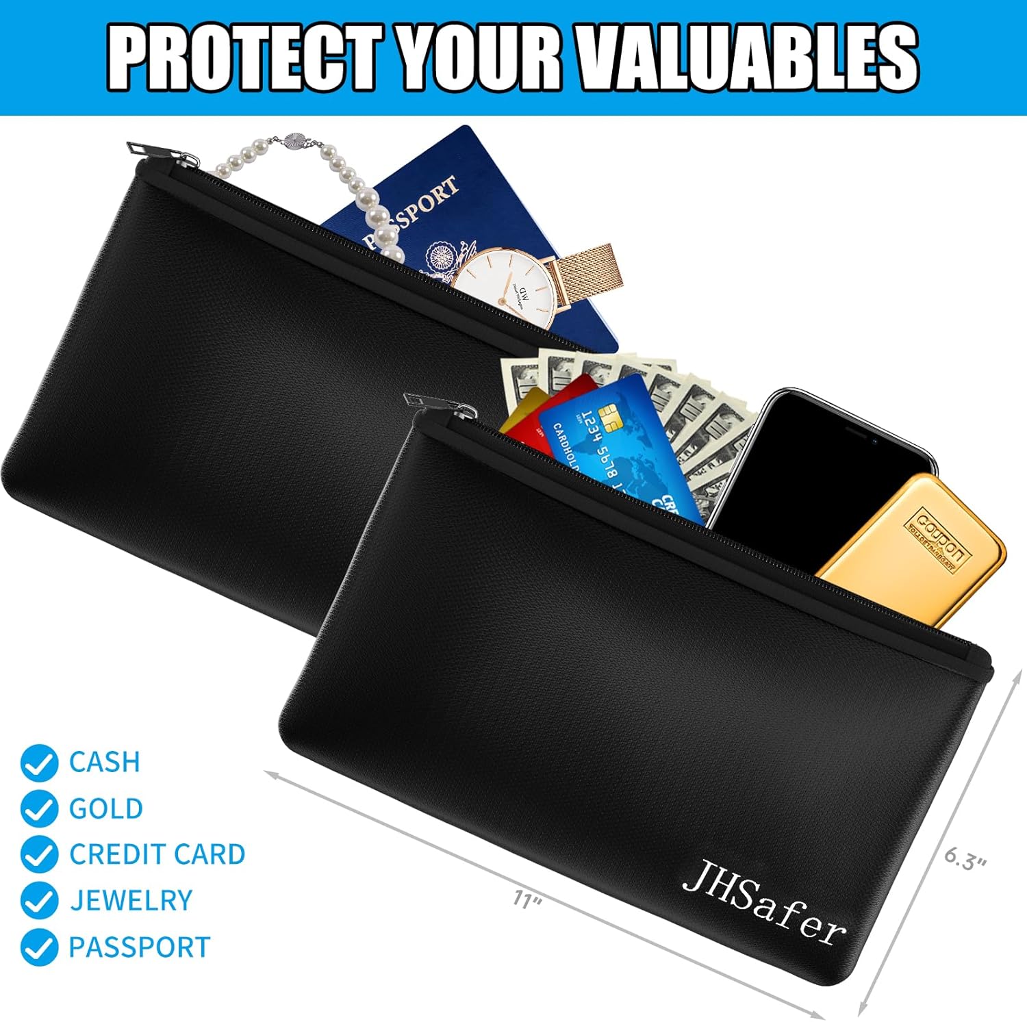 - Convenient to carry: The set comes with 2 fireproof money bags,you can use both for yourself, or choose one money bag as a gift for your family or friends;Each fireproof money bag for cash measuring 11''x6.3'', not too big and not too small;The fireproof document bags perfect for carrying your cash, passport, credit cards, keys, jewelry and more