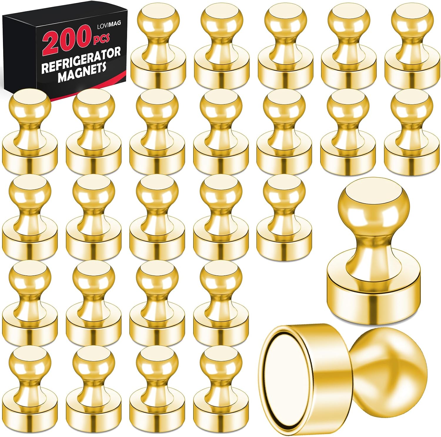 LOVIMAG 200Pcs Gold Fridge Magnets, Small and Strong Magnets for Whiteboard, Office, Classroom, Map, Kitchen Accessories, Office Accessories, Locker Accessories