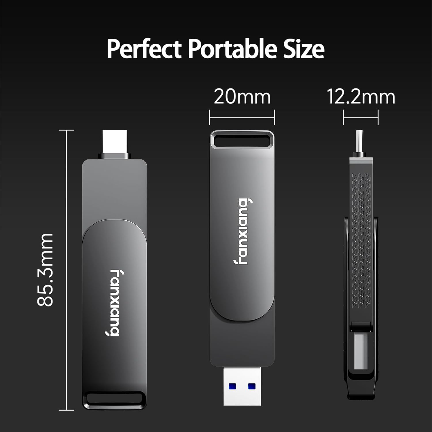 - Dual Port Thumb Drive: fanxiang FF951 thumb drive designed with type c and usb a interface to revolutionize your data storage and transfer experience. This flash drive can conveniently transfer movies, files, data between different devices, whether they are PCs, Macs, phones, or tablets. Our 512GB thumb drive is the ultimate solution for freeing up space and transferring data - one drive does it all