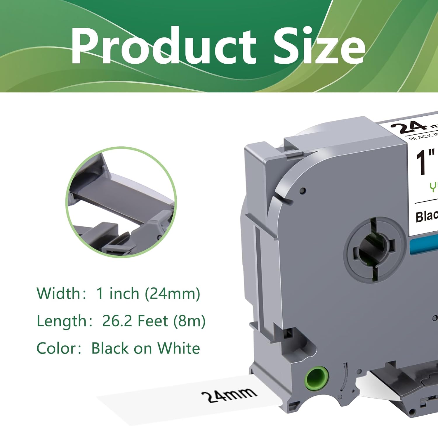 - Product Size: Color: black on white tape, Width: 1 inch (24mm), Length: 26.2 feet (8m) for each label tape 24mm 1" laminated white