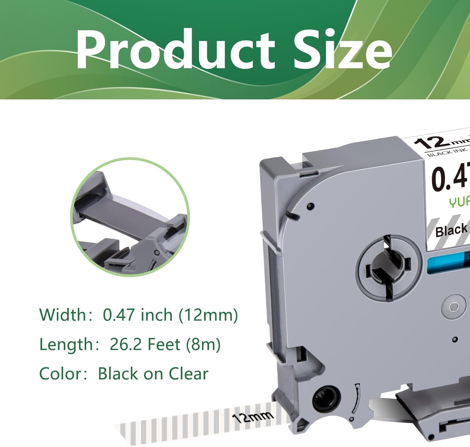 - Color: black on clear, Width: 1/2 inch (12mm 0.47 inch), Length: 26.2 feet (8 m) for each laminated label clear tape