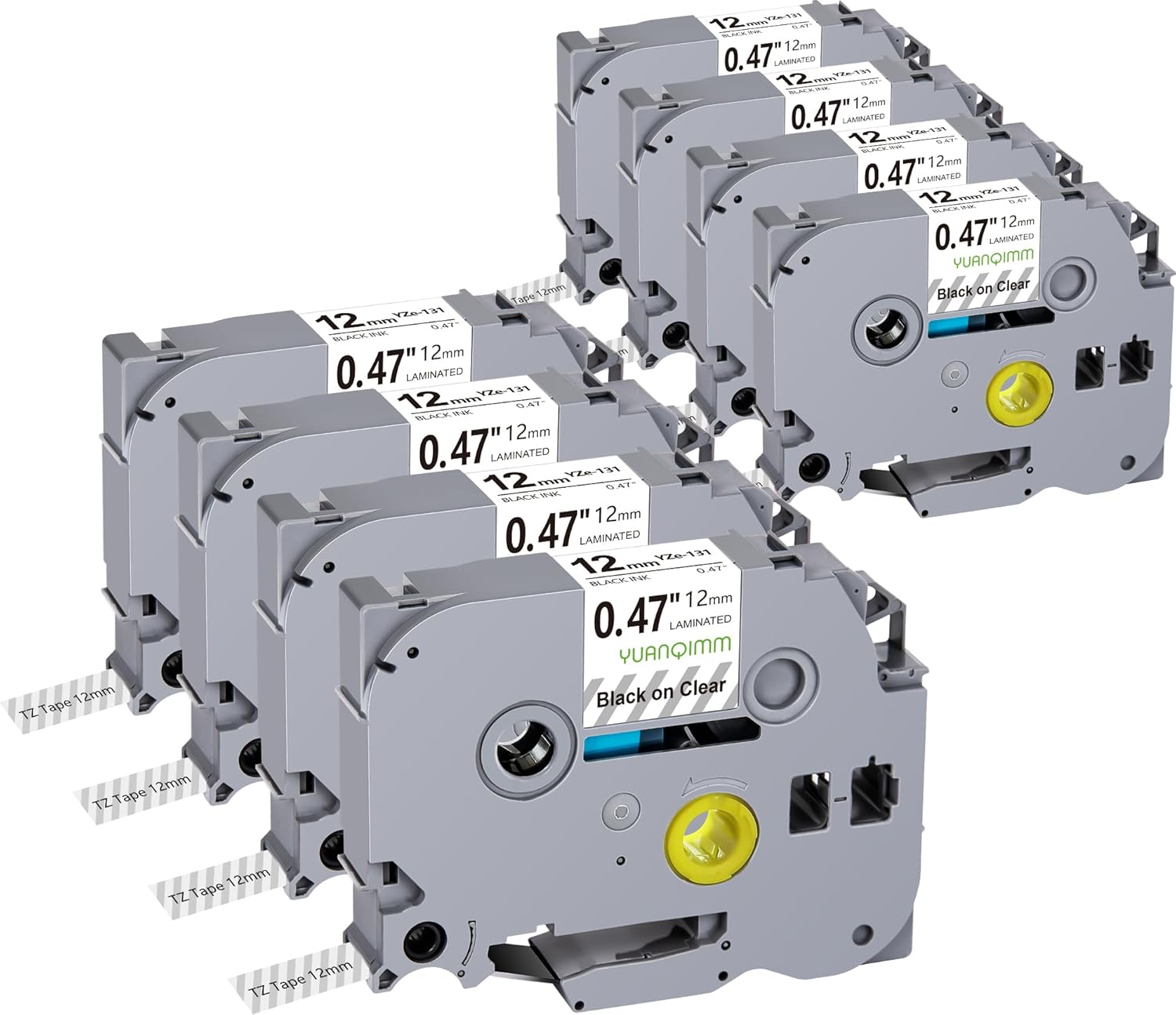 - Package includes: 8-Pack label tape compatible with Brother Ptouch TZe-131 TZe131 TZ131 TZ-131 TZe TZ tape 12mm 0.47 laminated clear tape