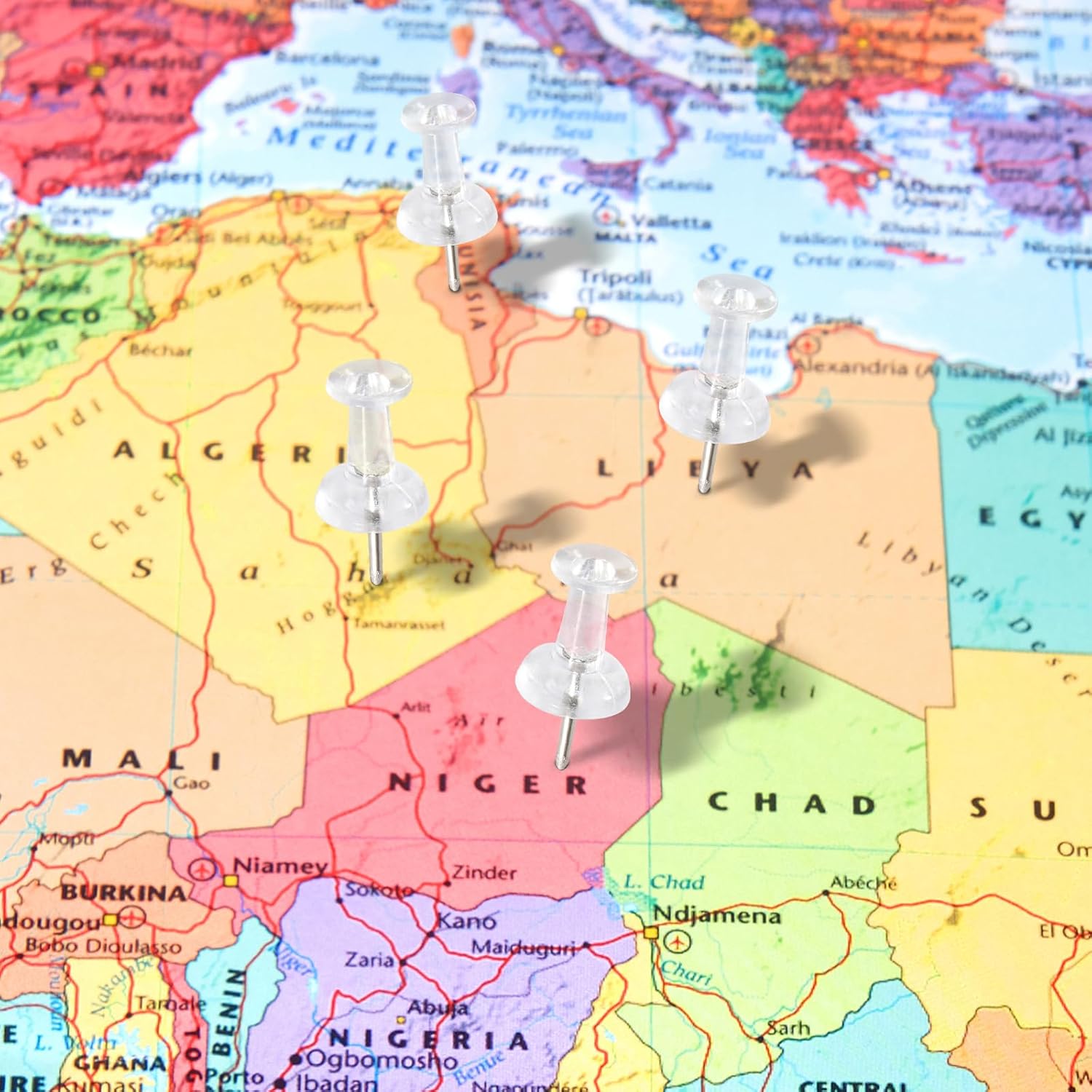 60Pcs Push Pins for Bulletin Board, Thumb Tacks for Cork Board, Clear Plastic Head, Steel Tip, Thumbtacks for Wall Poster Photo Maps Pictures Office Home Decor