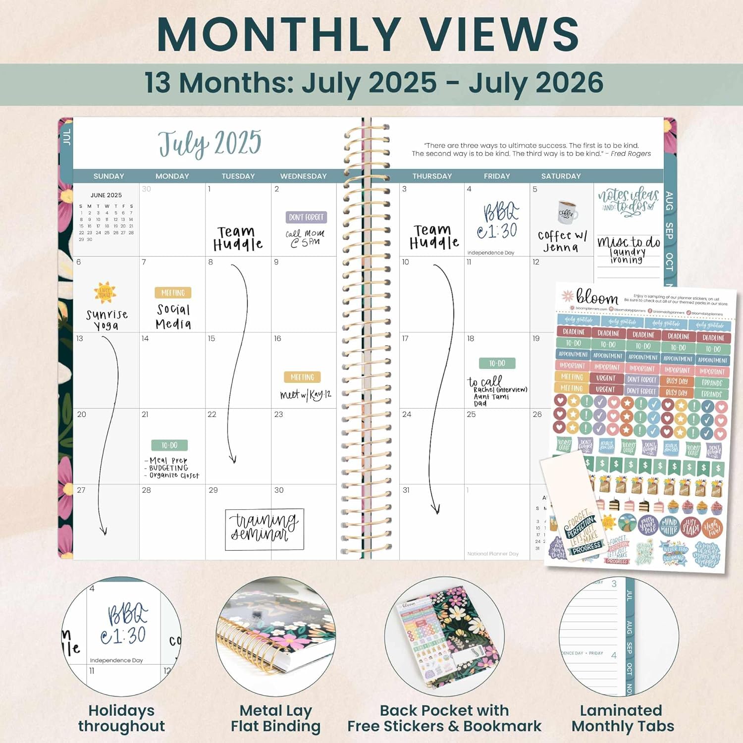 - STAY ORGANIZED WITH A BLOOM PLANNER 2025-2026 FOR WOMEN! This beautifully designed weekly and monthly planner helps you manage your schedule with ease. Choose from 15 stylish cover options—check the Product Description or visit our store for more designs and inspiring office essentials.