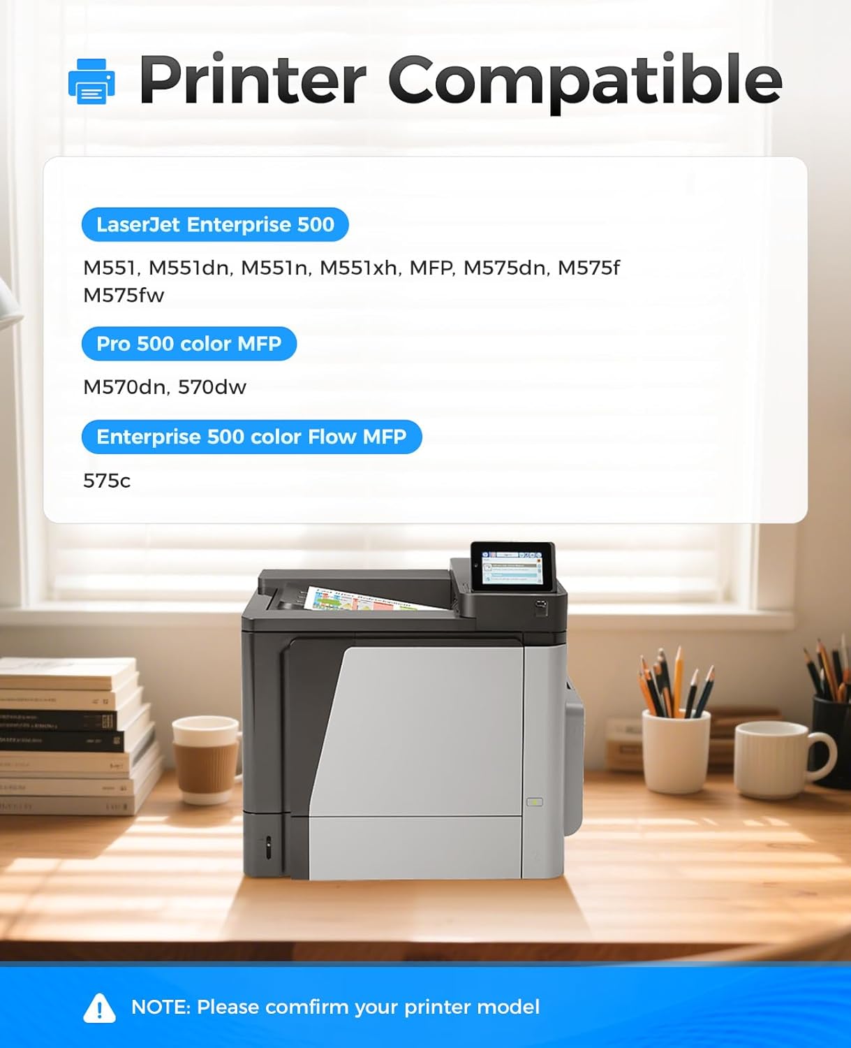 - Compatible Printers: Compatible with HP Color LaserJet Enterprise 500 color M551 M551dn M551n M551xh MFP M575dn M575f M575fw, Pro 500 color MFP M570dn 570dw, Enterprise 500 color Flow MFP 575c Series Printer.