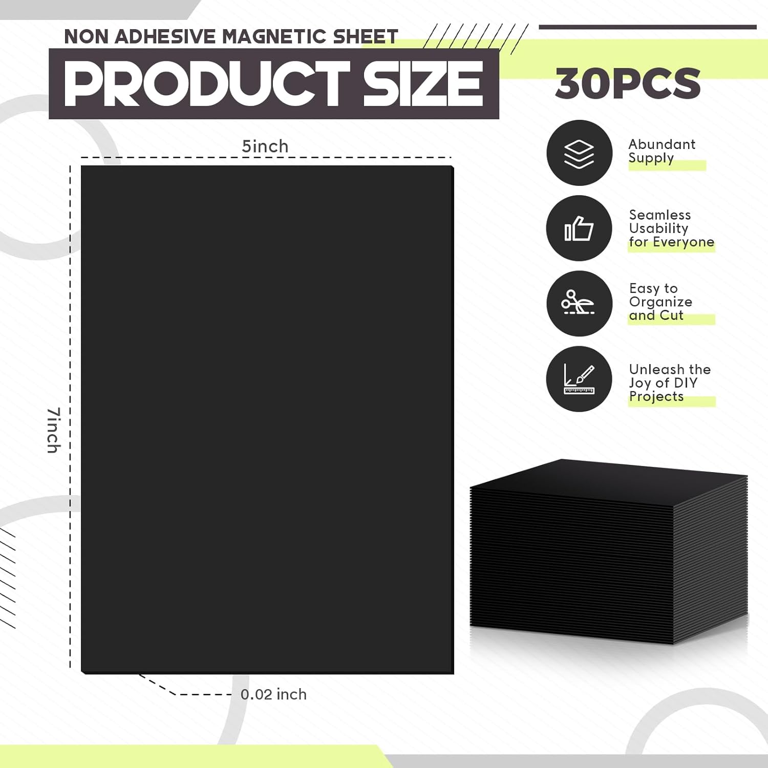 - Abundant Supply: the non adhesive magnetic sheet comes in a bulk quantity of 30 pieces, providing an abundant supply for all your crafting needs; Measuring about 7 x 5 inches with a comfortable 0.02 inch thickness, each sheet is suitably sized to accommodate different project requirements