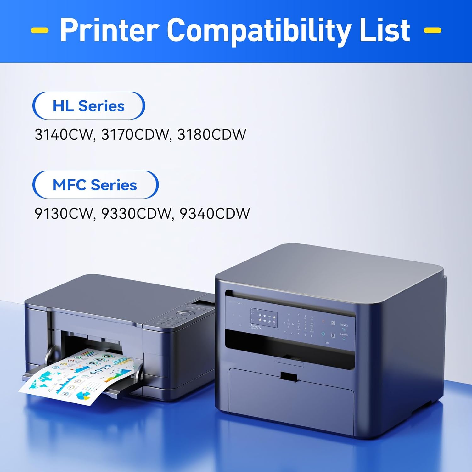 - Compatible Printers: Compatible with Brother HL-3140CW HL-3170CDW HL-3180CDW MFC-9130CW MFC-9330CDW MFC-9340CDW Printer.