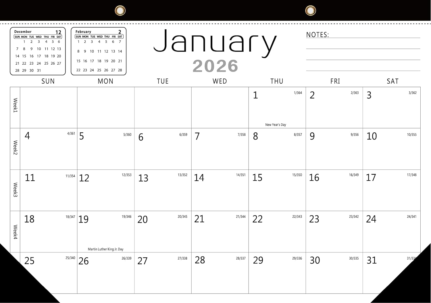 - 【18 Months Wall Calendar】:2026-2027 Wall Calendars from Jan. 2026-Jun. 2027,the calendar helps to track your daily tasks and long-term goals. calendar:12"×17". extra adding 6 monthly pages, Full year reference calendars are shown on each page for quick date checking and future planning, perfect to track your daily tasks, long-term goals & academic year planning.