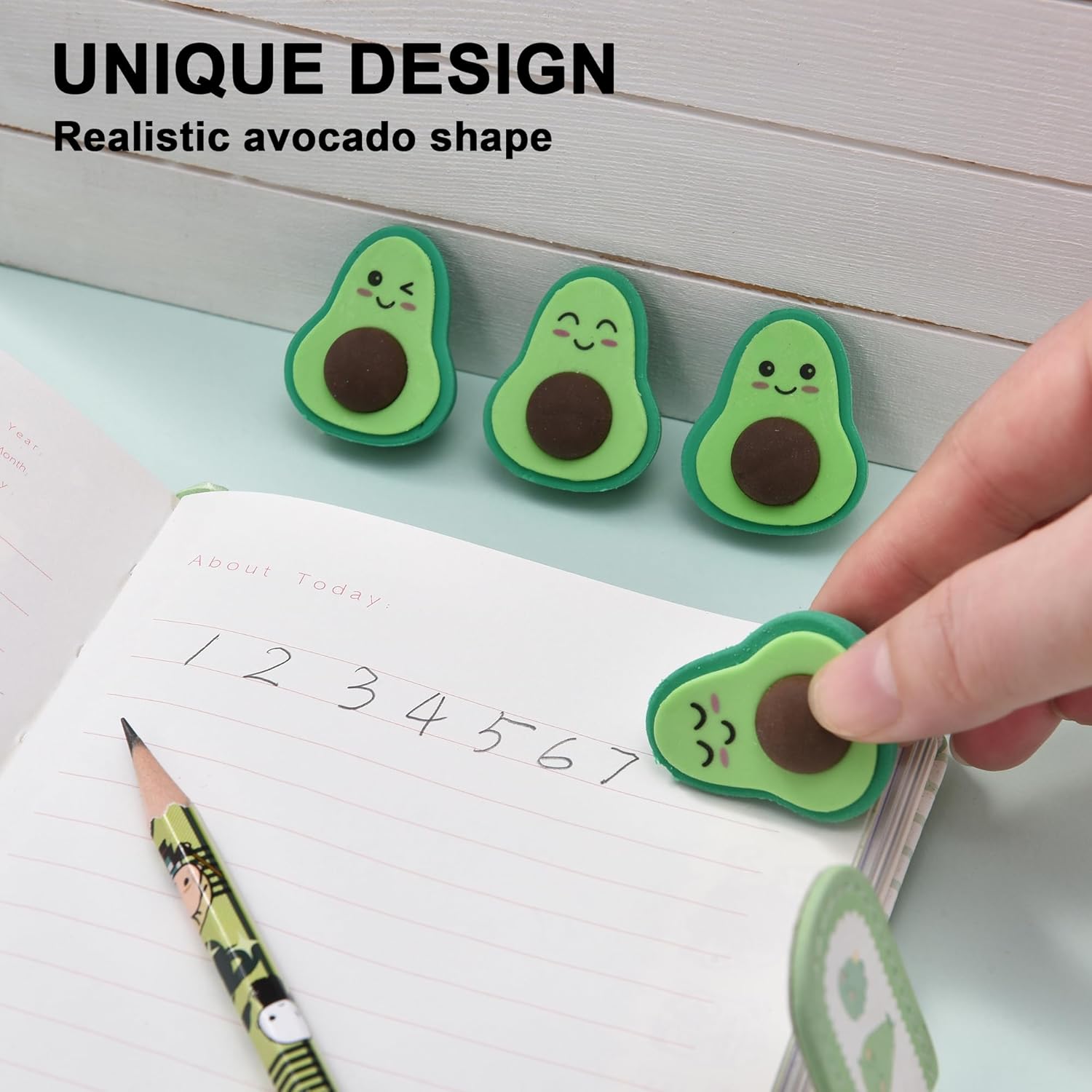 - Realistic Avocado Design: These erasers feature a lifelike avocado shape that adds a playful and stylish touch to your stationery collection