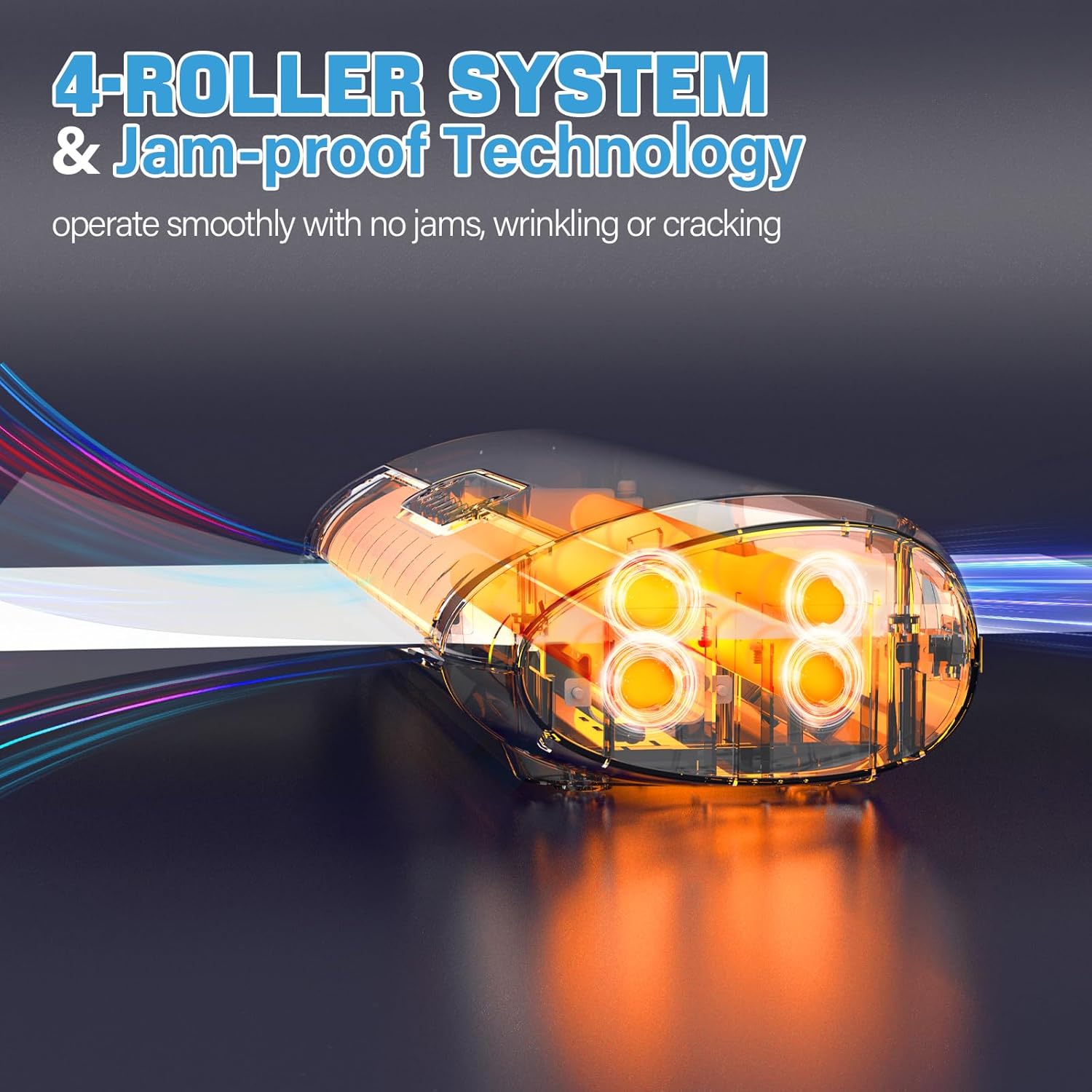 - 4-Roller System for Perfect Results: Equipped with a robust 4-roller system including two heating rollers and two pressing rollers, this thermal laminator offers excellent heat conduction and pressure for consistent lamination results. Avoid the bubbles and fogging effects that occasionally occur in 2-roller laminators. This 10 mil laminator machine is well-suited for office and school environments with heavy lamination needs