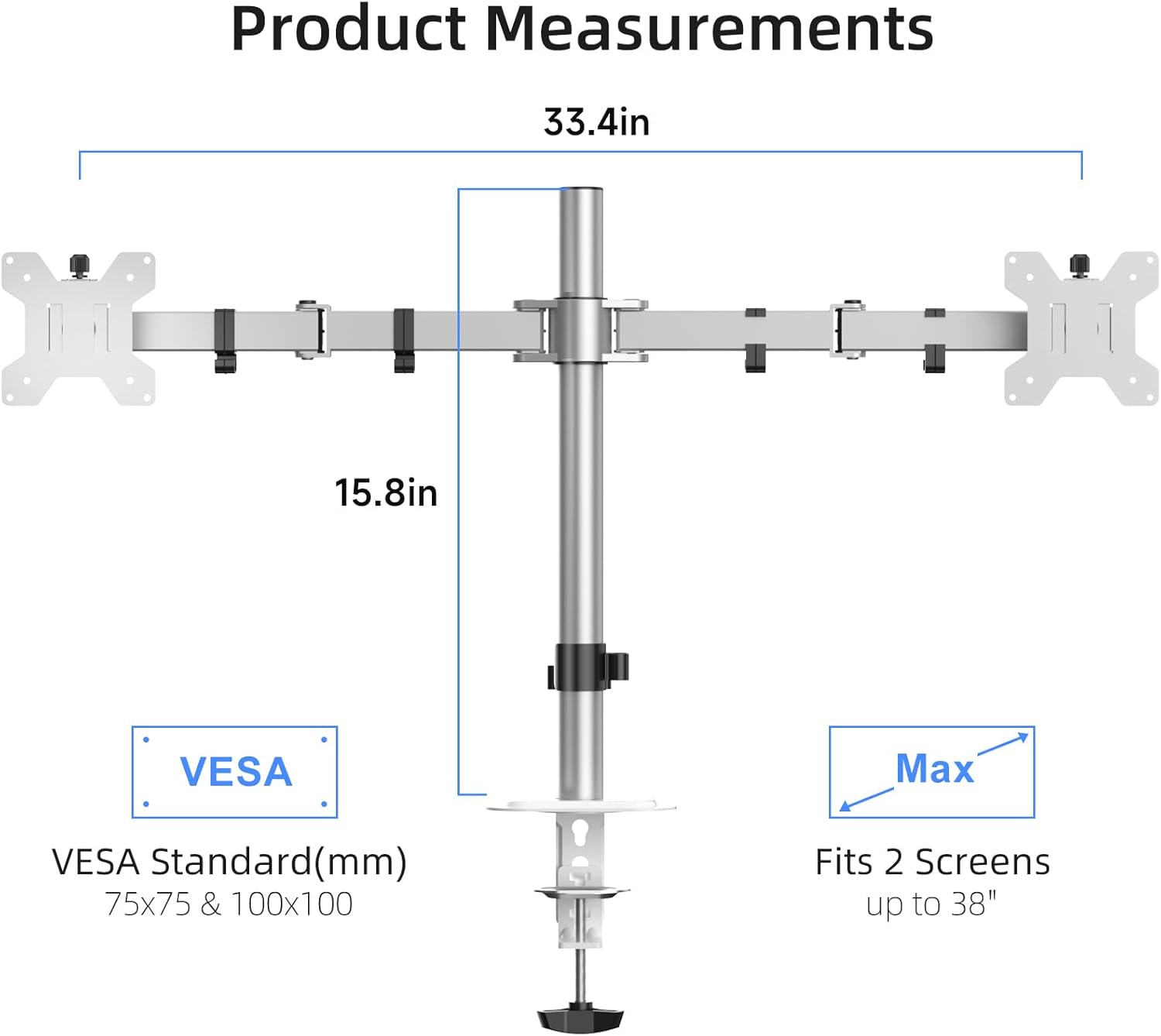 - Compatibility - Suptek Monitor Arm Mount ideal for most screens up to 38" and 22lbs each with 75x75mm or 100x100mm backside mounting holes.