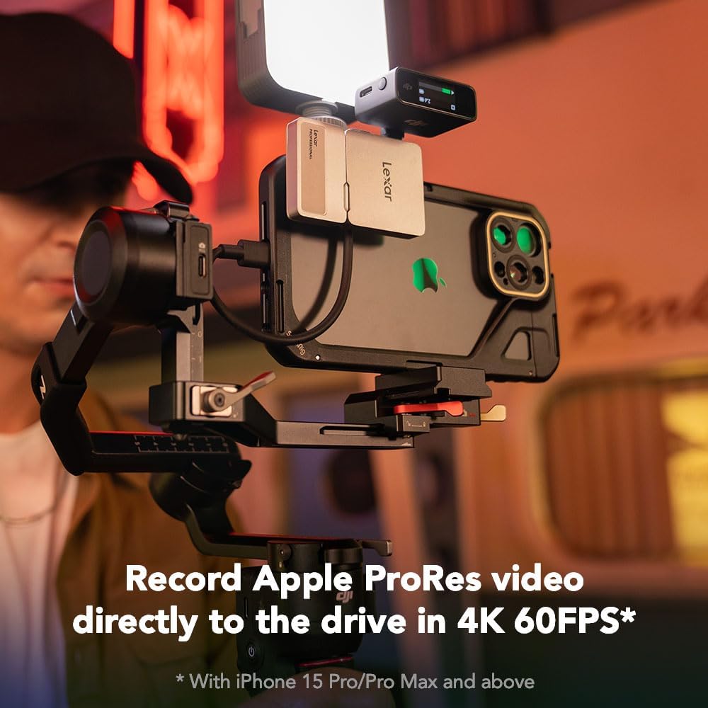 Lexar 2TB Professional Go Portable SSD w/Hub, Supports Apple 4K 60fps ProRes, Up to 1050MB/s, USB 3.2 Gen 2, Rugged, IP65, Ultracompact, Compatible w/iPhone 15/16, External SSD (LSL400S002T-RNSNU)