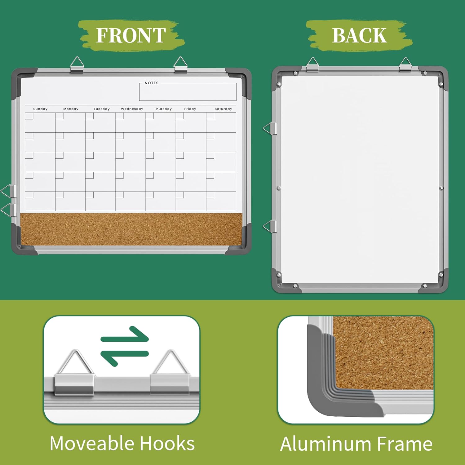 Dry Erase Calendar White Board for Wall, Polegas 17" X 13" Magnetic Whiteboard Dry Erase Cork Board Combination, Small Wall Monthly Double Sided Boards Student, Home, Office (White)