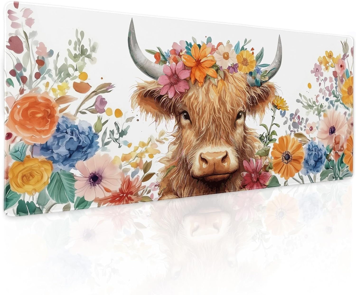 - ★【31.5×11.8 inches Large Mouse Pad】:The highland cow mouse pad on the top of desks is large enough to fit your mouse, keyboard,and other items,offering plenty of room for gaming,office work,and daily use while protecting your desk.