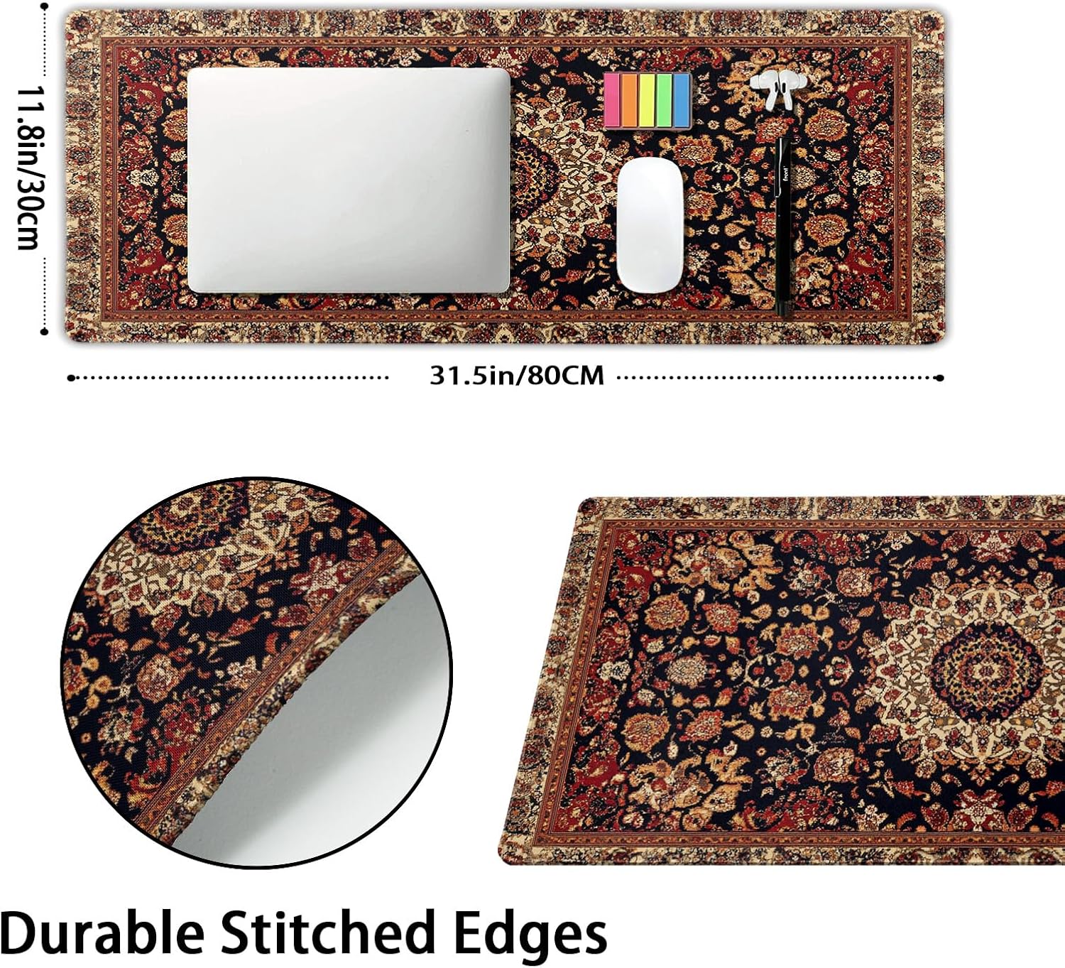 - ★【31.5×11.8 inches Large Mouse Pad】:The vintage rug mouse pad on the top of desks is large enough to fit your mouse, keyboard,and other items,offering plenty of room for gaming,office work,and daily use while protecting your desk.