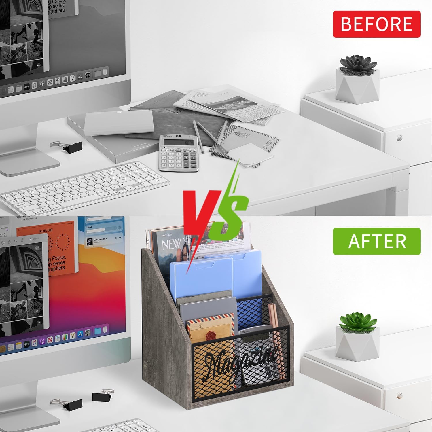 - Unique Sloped Design:Unlike other magazine holders,the magazine rack boasts a special design with three stepped sloped compartments, an exclusive creation by our designers. Different lengths of files can be placed in varying depth compartments,effectively organizing mail,bills,magazines,and office documents.