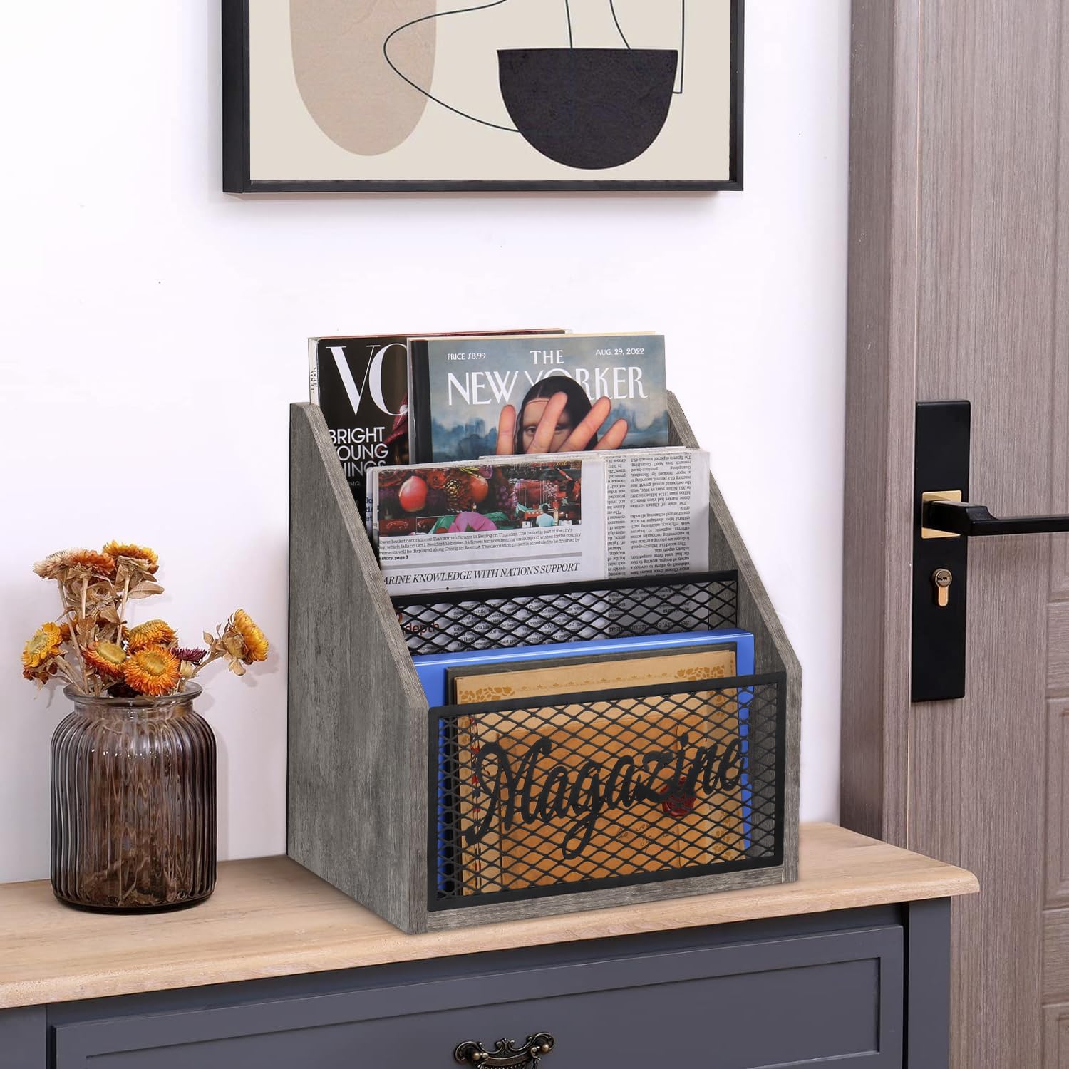 - Classic Durability: Gray wood boards add character,while high-quality metal mesh with a baked finish ensures lasting strength.The front panel with the "Magazine" font adds a stylish touch,fitting seamlessly into any decor, making it a captivating and enduring piece in your home decor.
