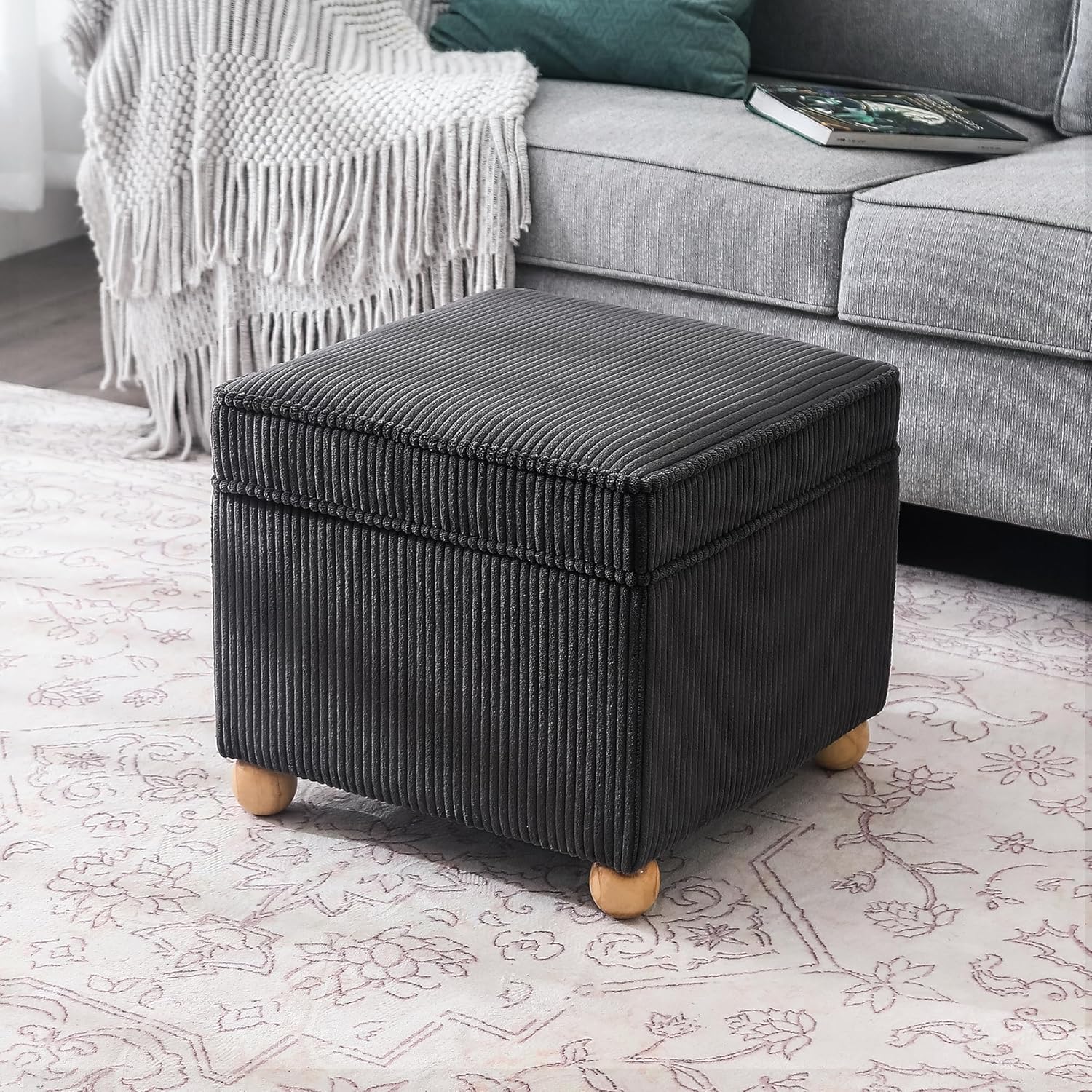- Small Ottoman Footrest with Storage - Perfect square storage ottoman allows you to organize your small household items, store extra pillows, blankets and books in your bedroom or family room. Great height and width to complement a sitting chair, desk or the sofa couch, super comfortable with thick upholstery on the top, also great gift ideas for your family members or friends.
