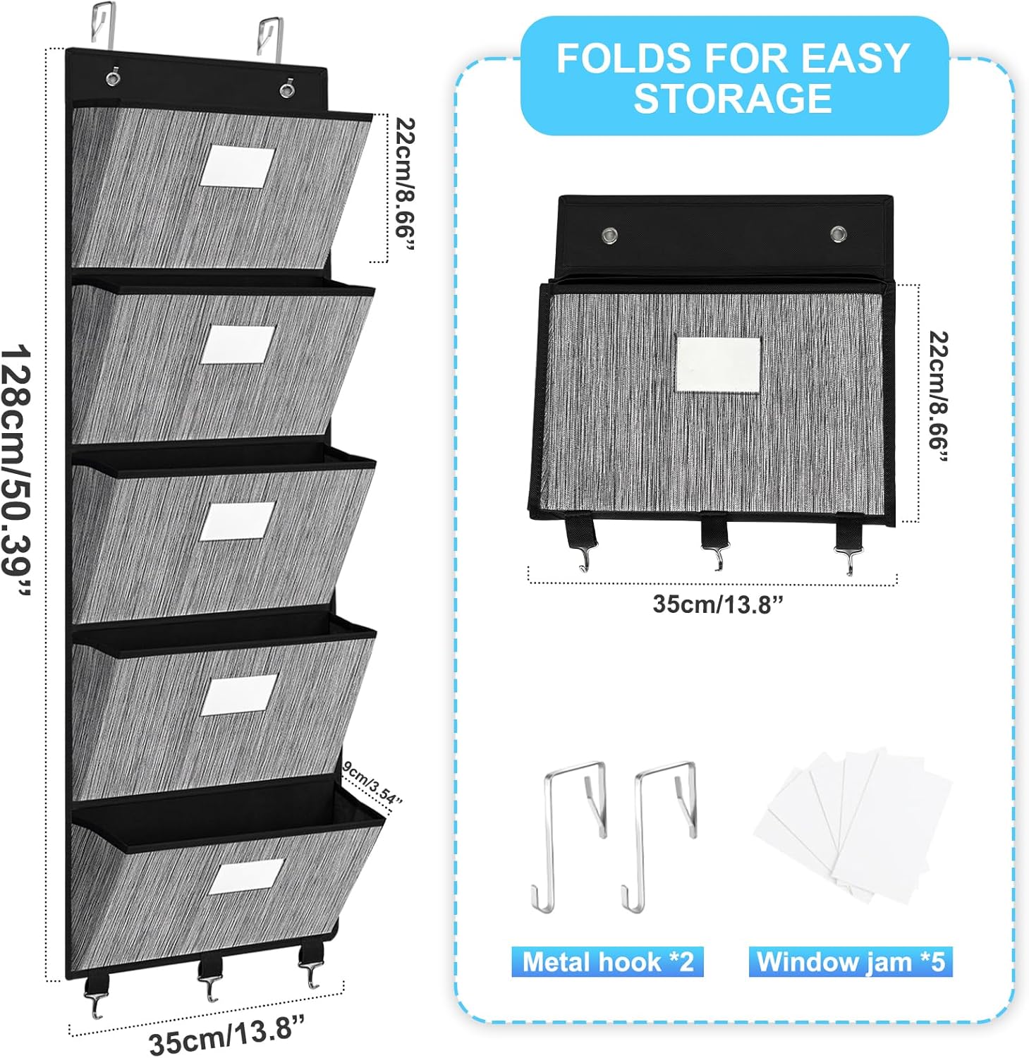 homyfort Over the Door File Organizer, Hanging File Folders Wall Organizer with 5 Large Pocket for Papers, Charts, Mails, Magazine, Office (Black)