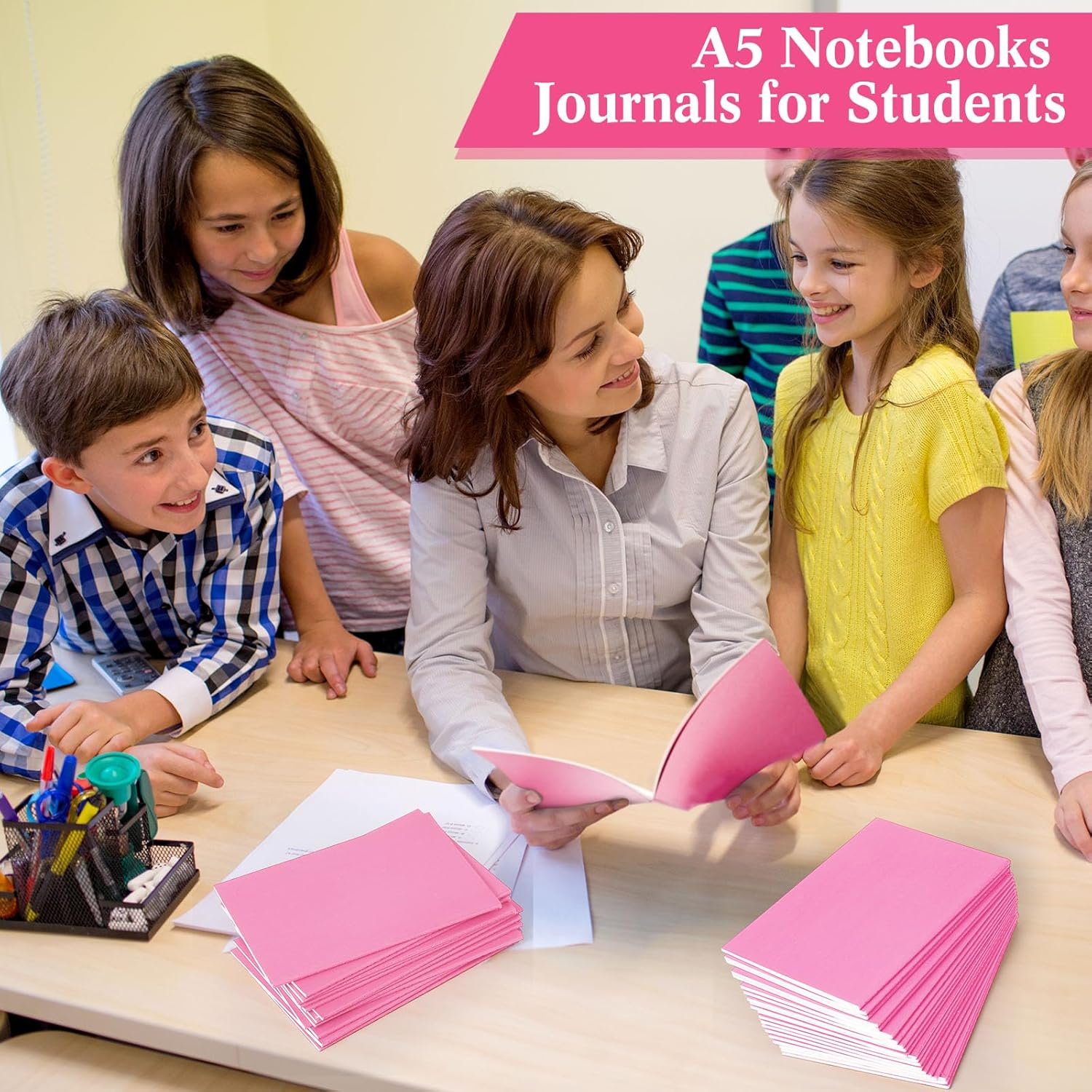 100 Pcs Kraft Notebook Journals 5.5 Inch x 8.3 Inch A5 Softcover Notebooks Bulk for Writing Sketch Office Notepad with 60 Pages 30 Sheets (Multicolor,Lined)(Pink,Lined)