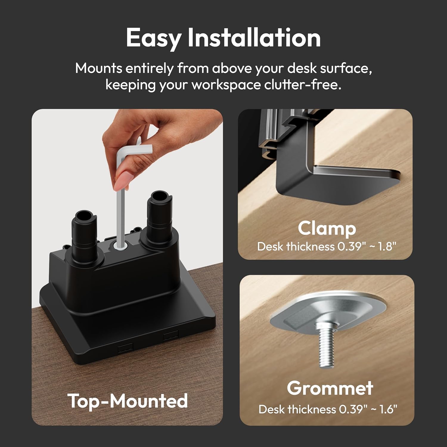 - Dual Monitor Setup - Accommodates two monitors up to 32 inches each and supports up to 19.8 lbs per arm. Each arm has a plate that can support 75x75mm and 100x100mm VESA mounting patterns.