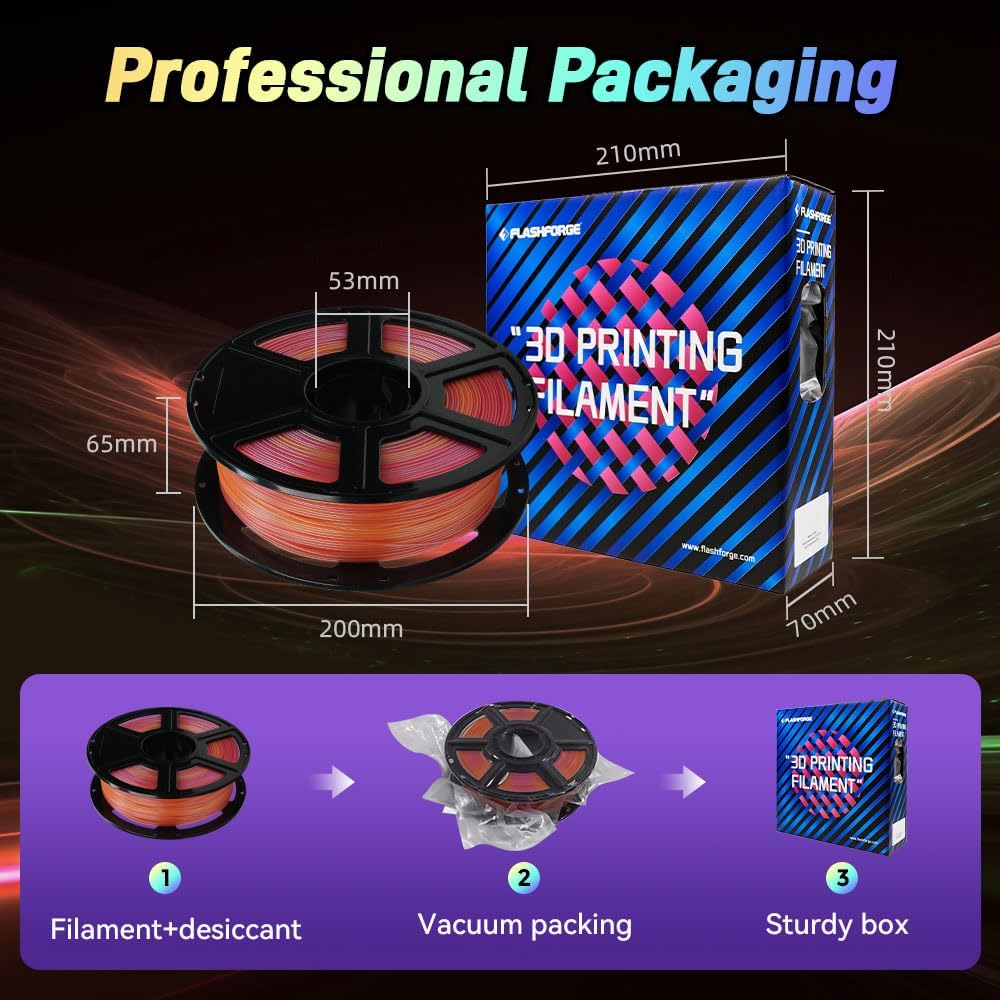 - 【Breathtaking Color Change Effects】FLASHFORGE HS PLA Multicolor filament combines fast printing with color variations that change when viewed from different angles and light, giving your prints a distinct visual appeal. Making it ideal for artistic projects and custom designs.