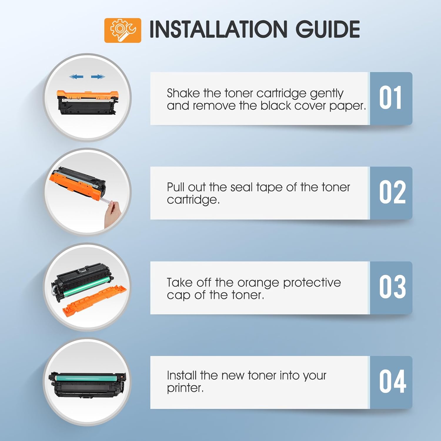 - Included: Cool Toner 1 x CE400X Black Toner, 1 x CE401A Cyan Toner, 1 x CE402A Yellow Toner, 1 x CE403A Magenta Toner