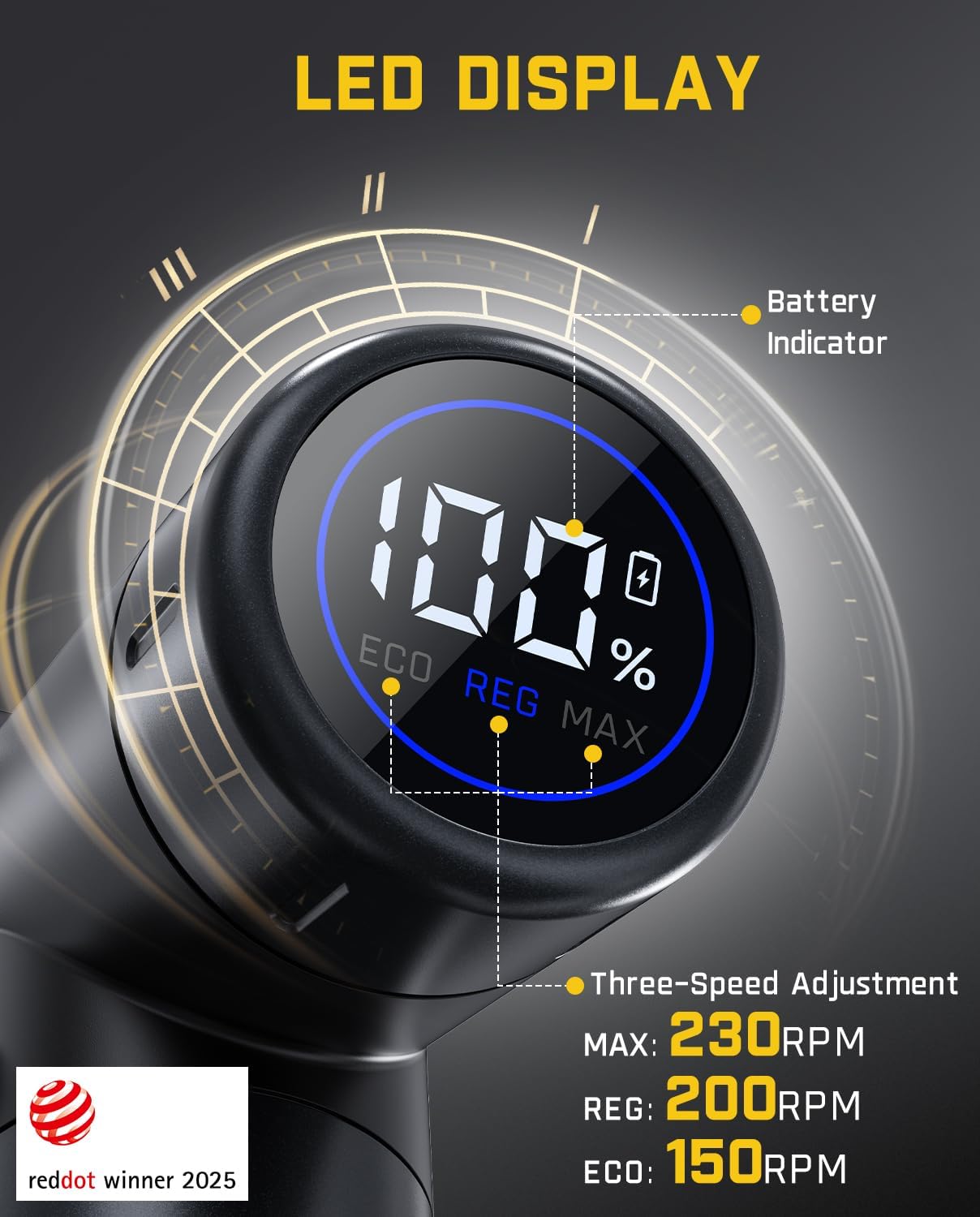 - LED Display & LED Lights: The 35 mm diameter LED screen - See real-time battery life & speed settings at a glance for full control and the built-in LED lights ensure clear visibility under any lighting conditions, significantly improving cutting accuracy and efficiency