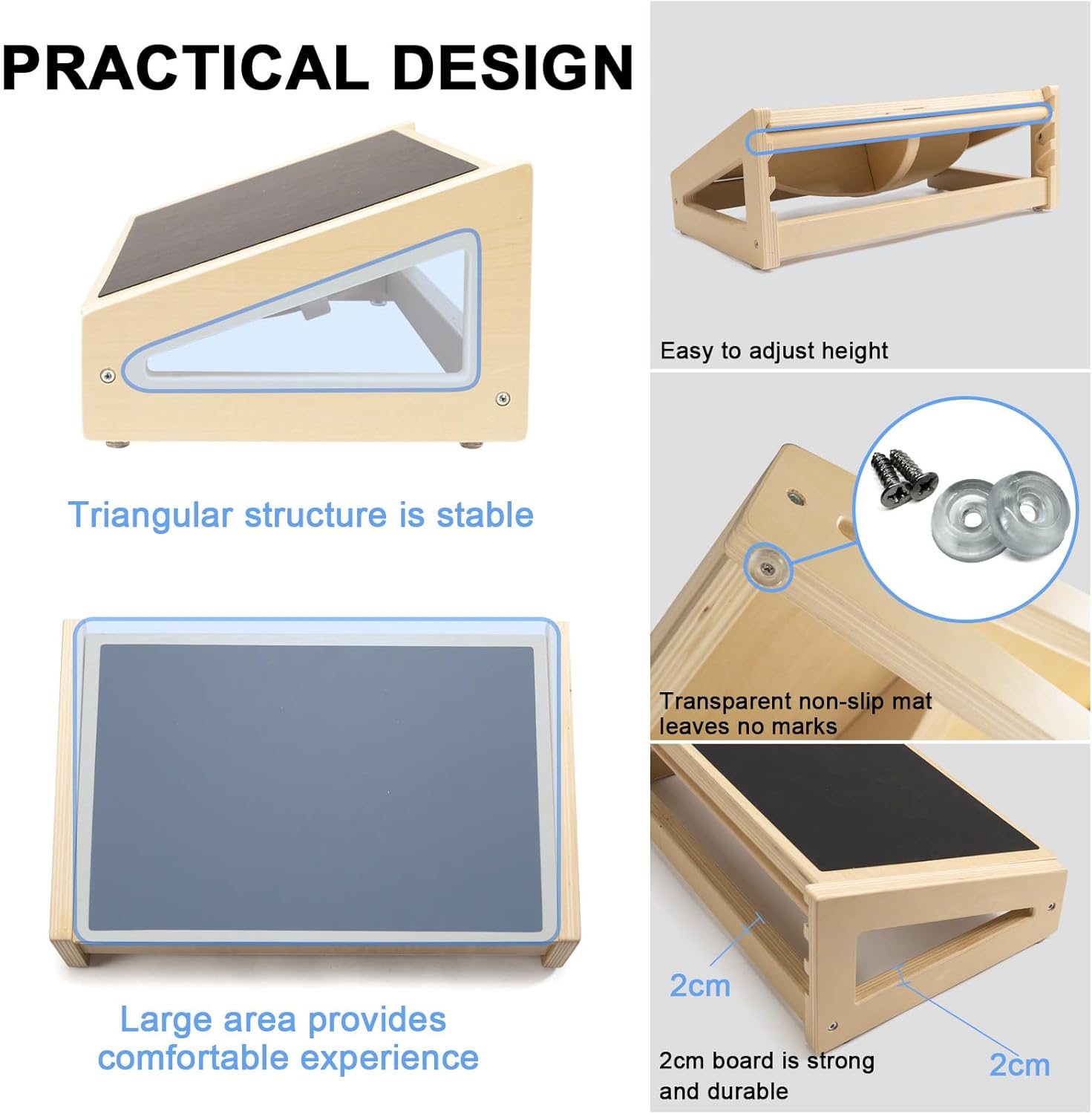- Safe and durable: The under desk footrest uses odourless silicone non-slip foot pads on the surface to provide bare feet with easy grip and comfort and is more environmentally friendly. The foot pad uses a transparent PP non-slip pad, which will not leave marks on the floor. The triangular structure and high-quality board with a thickness of 2cm provide it with a weight capacity of 400 pounds, which is durable and long-lasting.