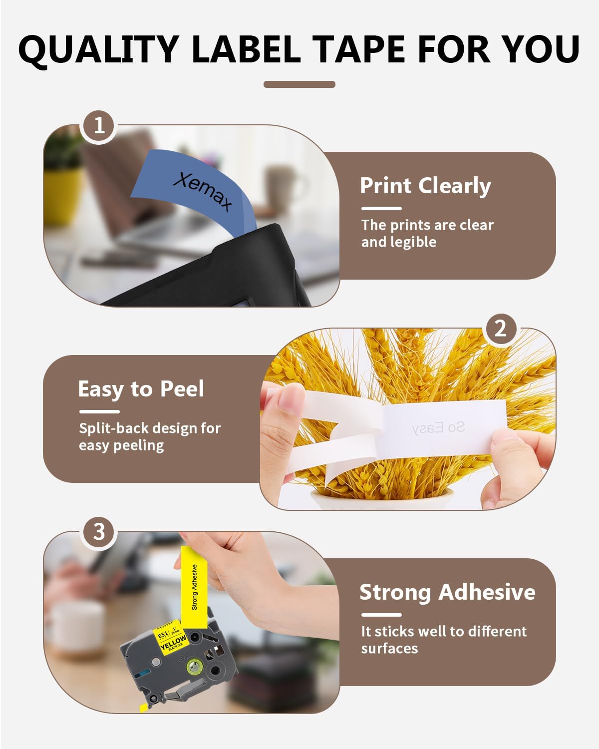 - Package Include: 6-Pack Multi-Color Tze 24mm 0.94" Label Tape for Brother Label Tape Tze-151 Tze-251 Tze-451 Tze-551 Tze-651 Tze-751 (Black on Clear/White/Red/Blue/Yellow/Green)
