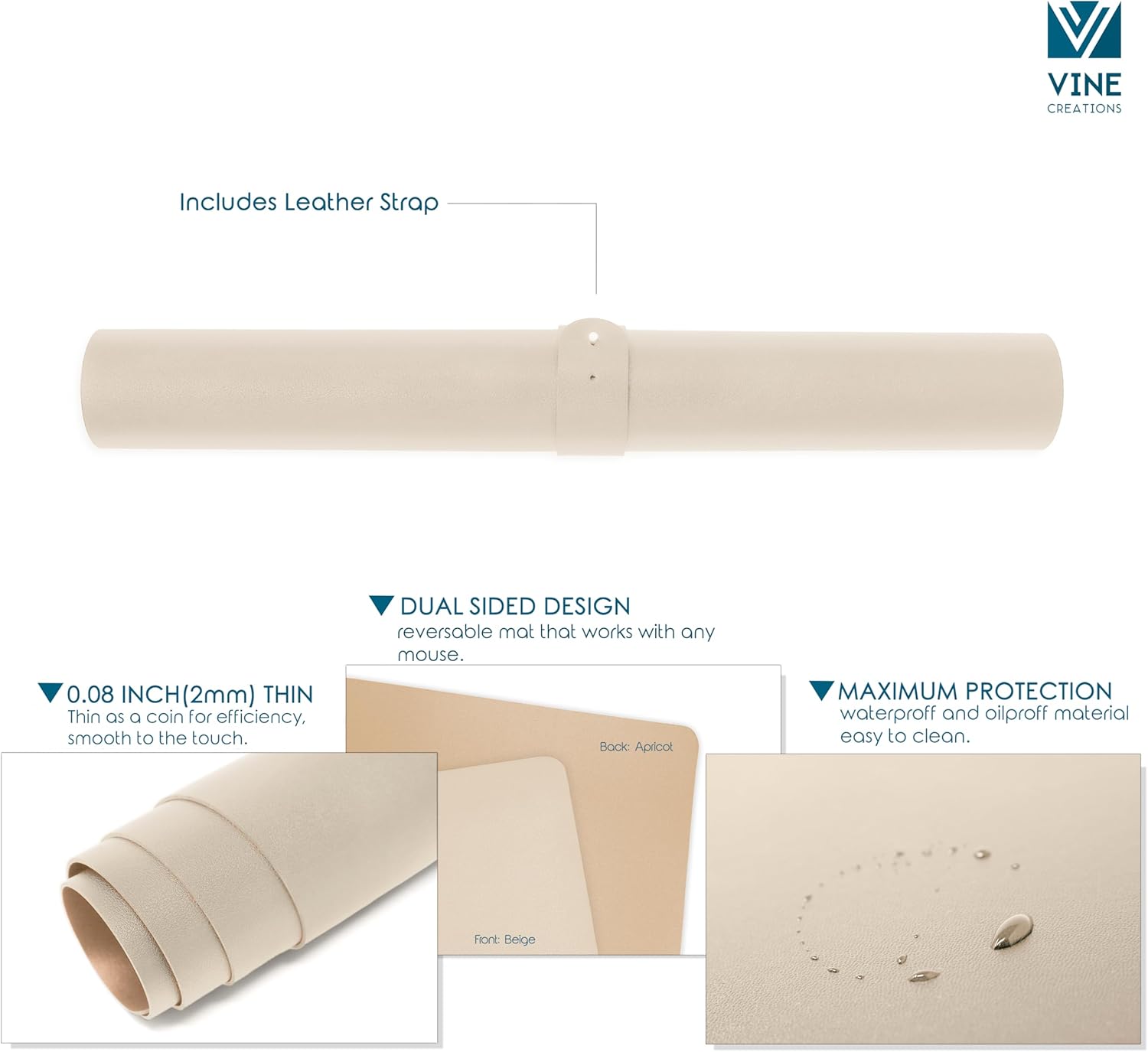 Vine Creations Leather Desk Mat Large 44" x 22", Desk Protector Mat, PU Leather Desk Pad, Large Mouse Pad Desk Blotter, Desk Pads on Top of Desks, Desk Matt for desktop Office Desk Mat (Beige/Apricot)