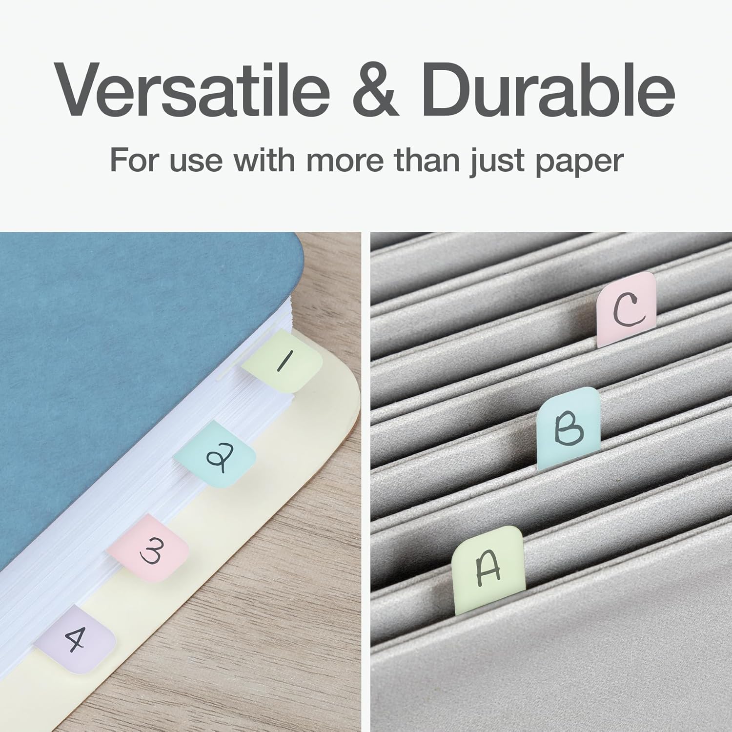 - You get 390 writable adhesive tabs in 5 pastel colors: pink, purple, blue, teal and green; colorcoding makes it a snap to find documents or pages you're looking for; perfect stock-up item
